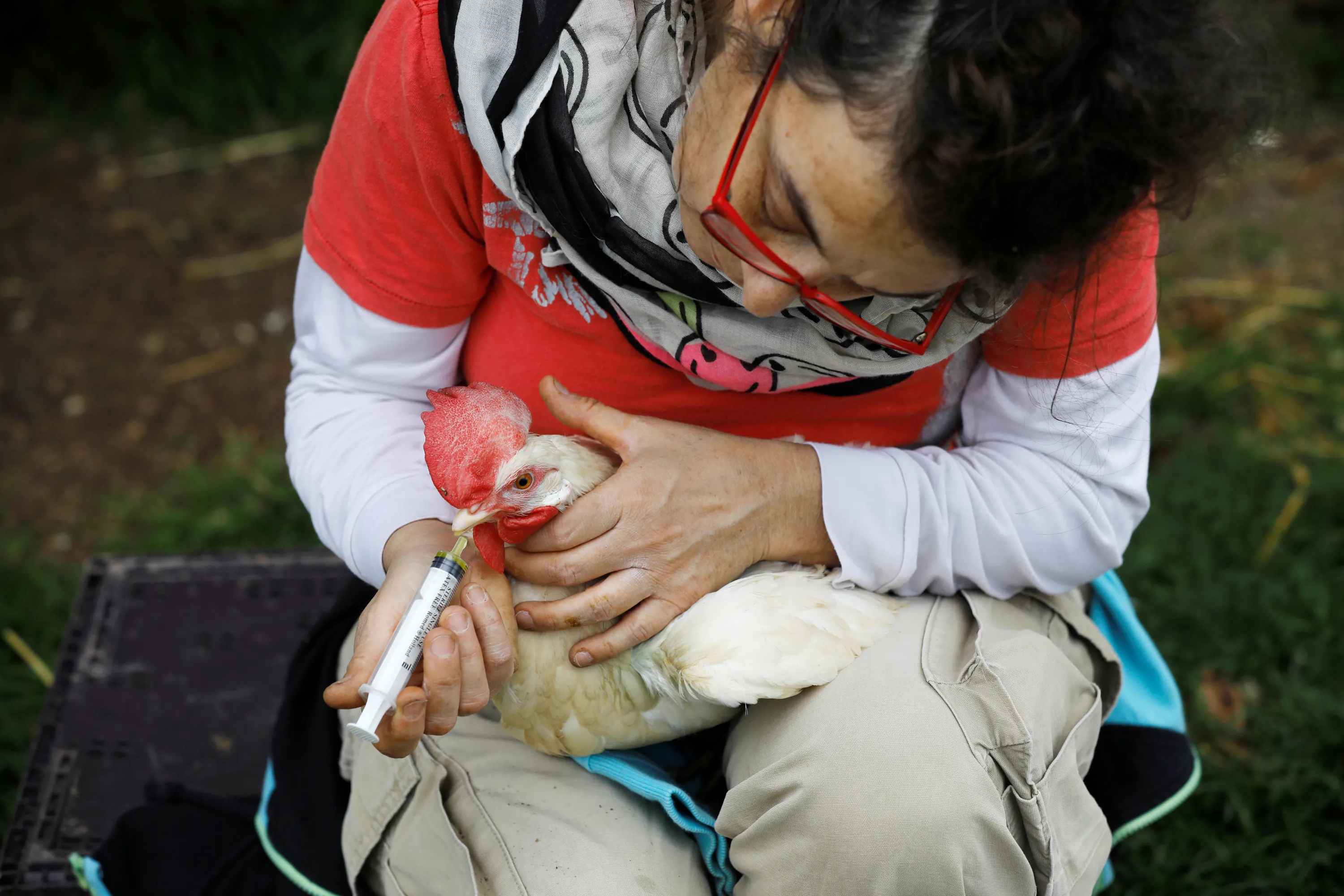 A volunteer treats a chicken at “Freedom Farm”, which serves as a refuge for mostly disabled animals in Moshav Olesh, Israel on March 7, 2019. (Photo by Nir Elias/Reuters)
