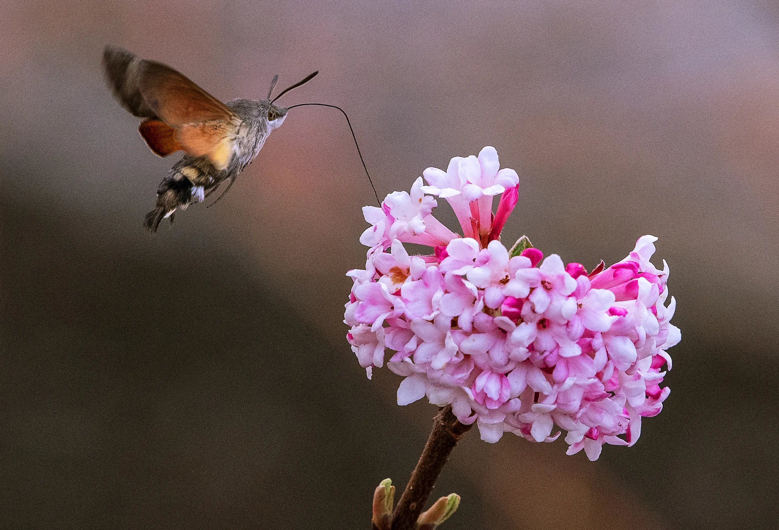 An insect flies next to a flower during springlike temperatures at the horticultural exhibition “ega” (Erfurt Garden Construction Exhibition) in Erfurt, Germany, Thursday, February 28, 2019. (Photo by Jens Meyer/AP Photo)