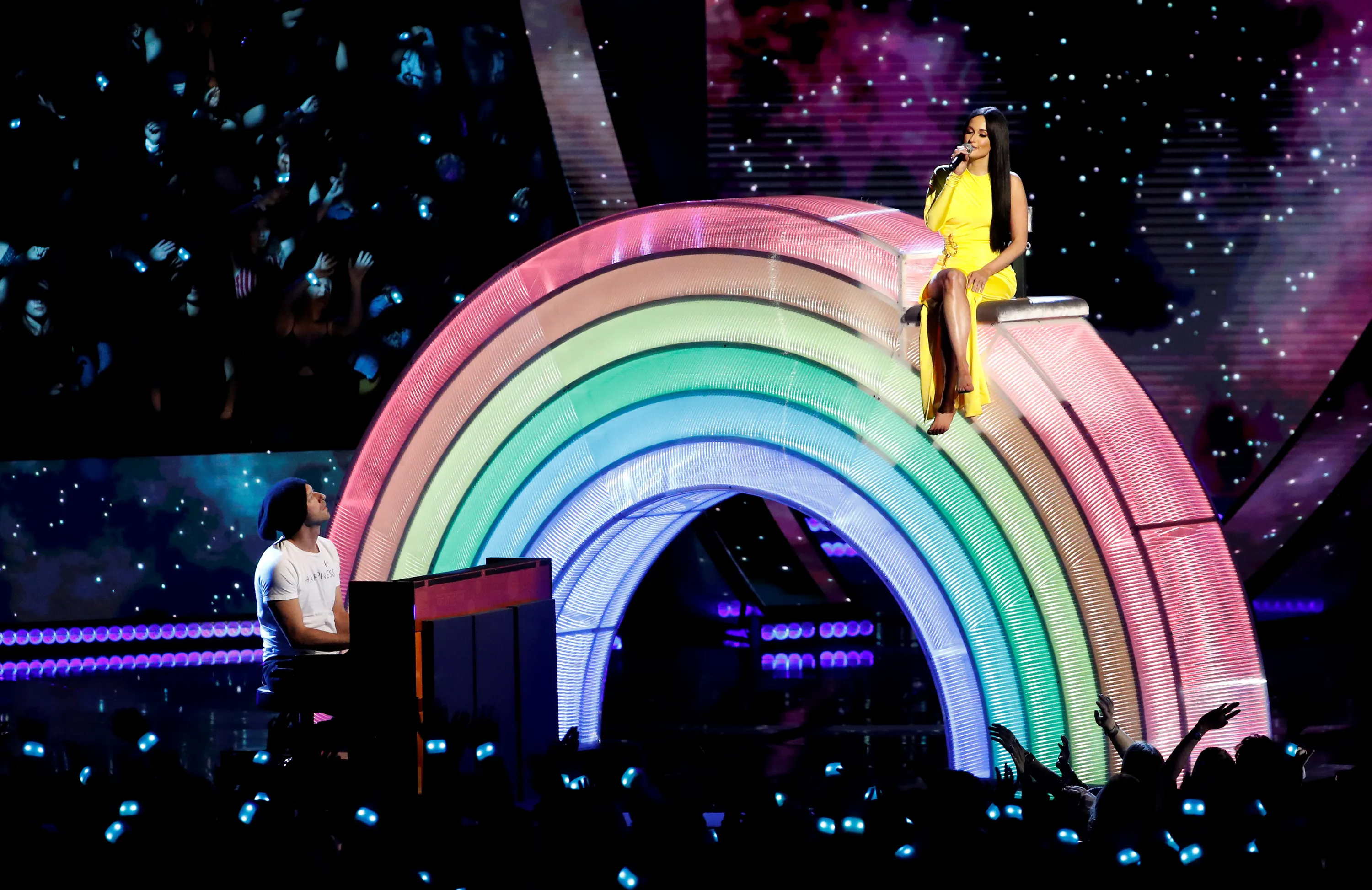 Singers Kacey Musgraves and Chris Martin perform during the iHeartRadio Music Awards in Los Angeles, California, U.S., March 14, 2019. (Photo by Mario Anzuoni/Reuters)