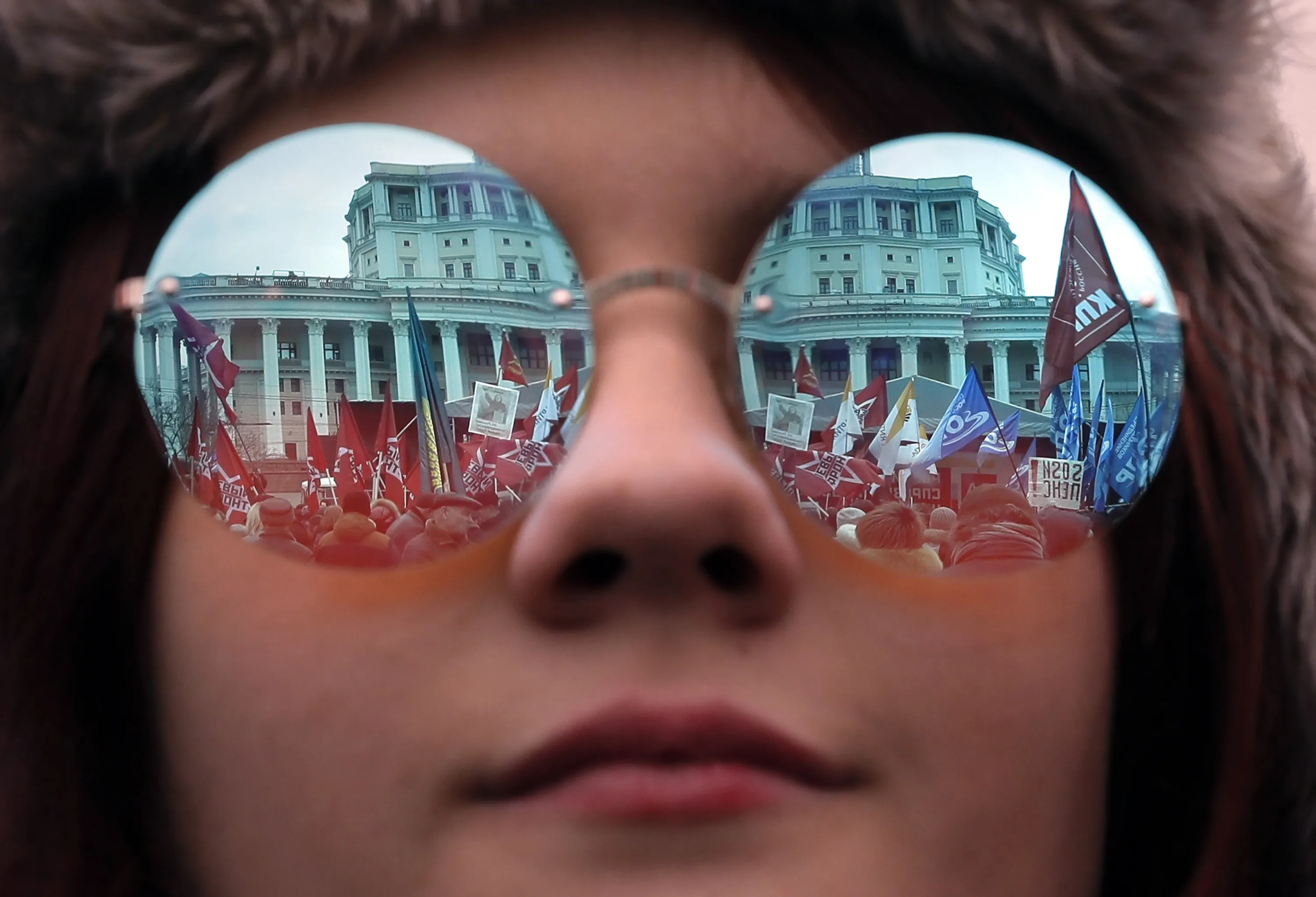 Woman attends an opposition rally in Moscow, Russia 17 March 2019. The rally is timed to the 28th anniversary of referendum on preservation of the USSR (which took place 17 March 1991) and to the 5th anniversary of Crimea's annexation by Russia. Participants rally demand to change the social economic course of the development of Russia. (Photo by Yuri Kochetkov/EPA/EFE)