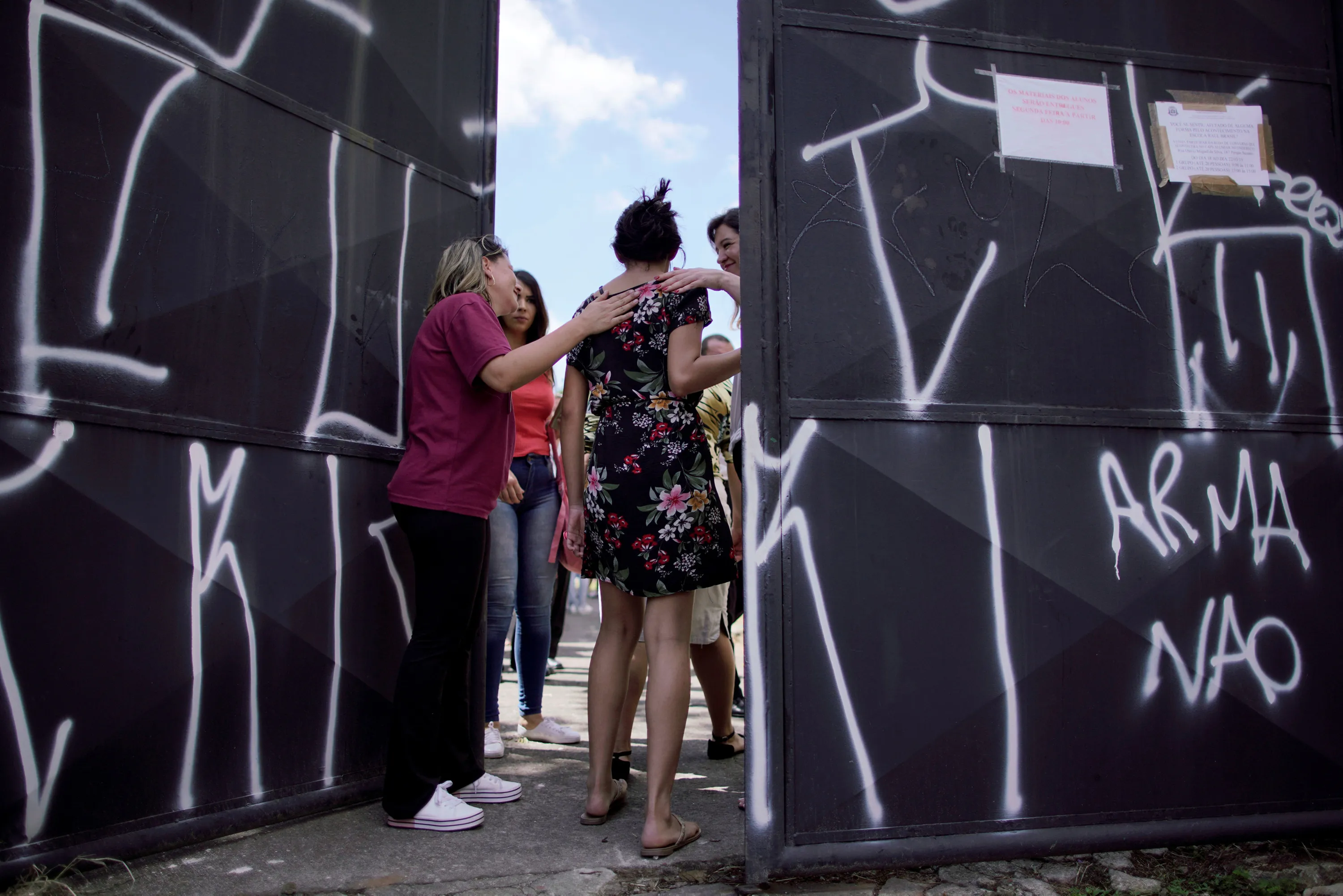 A student is received during a reopening day of the school, after the shooting in the Raul Brasil school in Suzano, Sao Paulo state, Brazil March 18, 2019. Two former pupils shot dead eight people and injured other 15, most of them students and staff, at a high school near Sao Paulo, before turning their weapons on themselves, authorities said. (Photo by Ueslei Marcelino/Reuters)