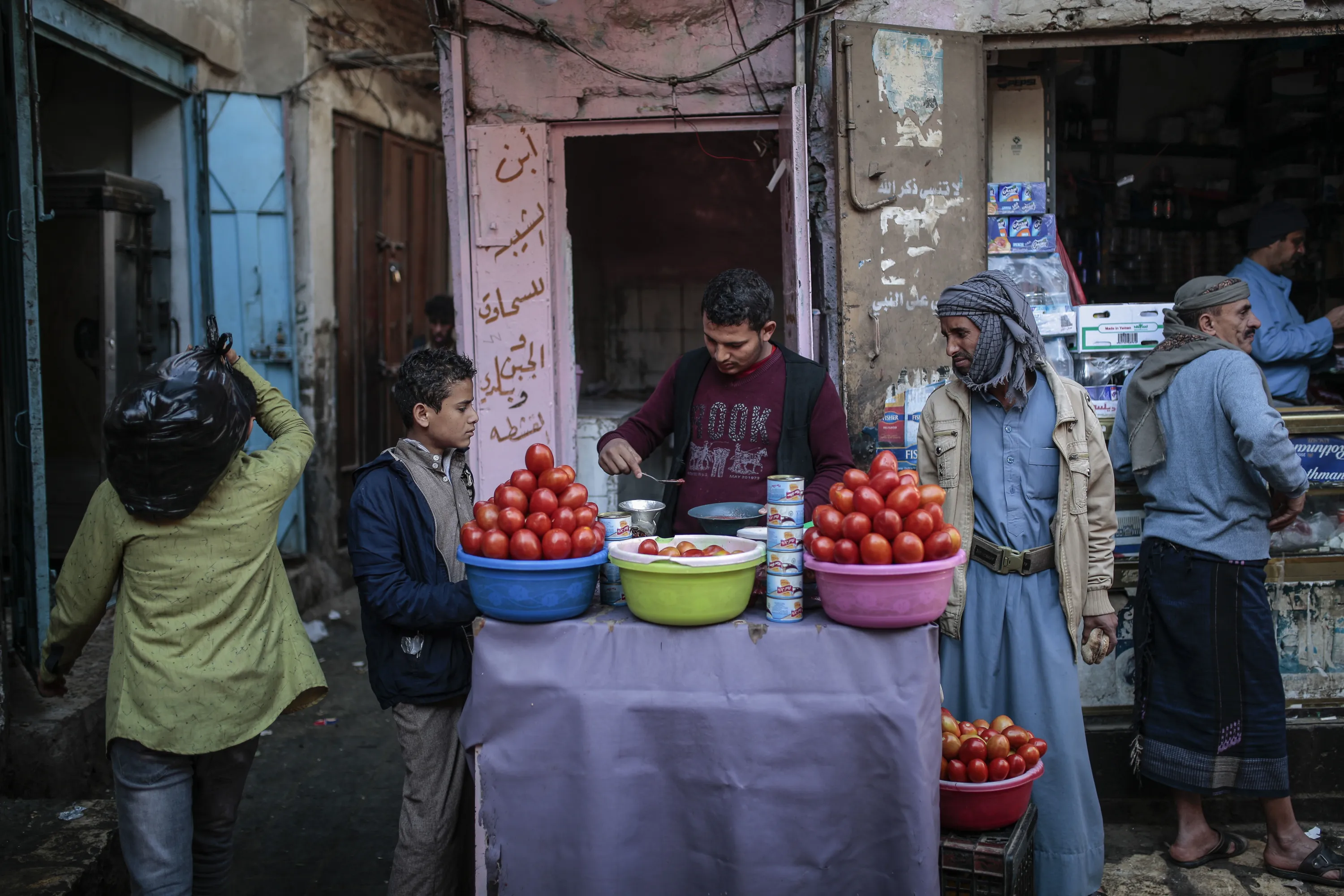 A Yemeni street vendor sells tomato chutney at Souq al-Melh marketplace in the old city of Sanaa, Yemen, Tuesday December 11, 2018. (Pgoto by Hani Mohammed/AP Photo)