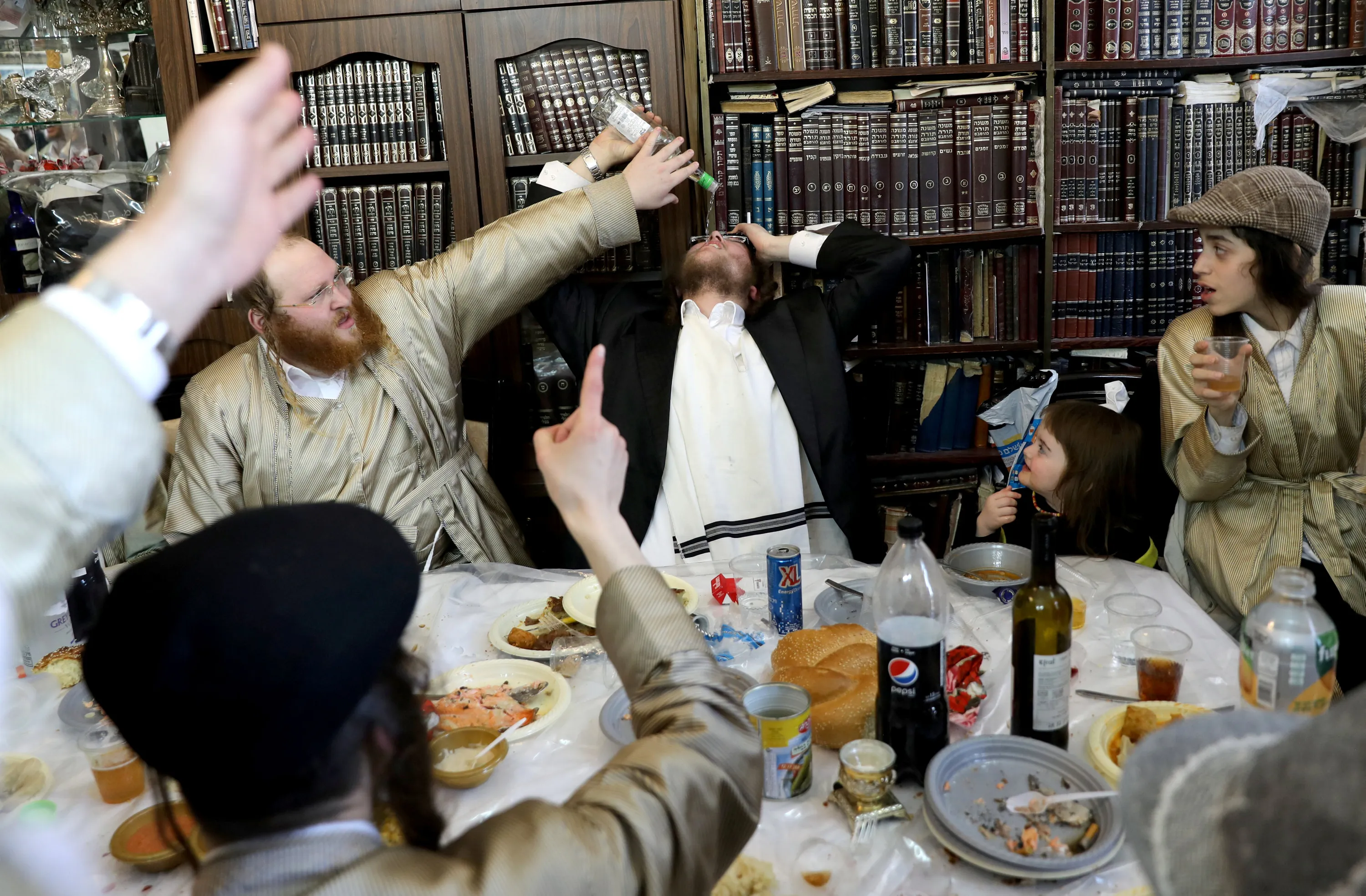 An ultra-Orthodox Jewish man drinks wine during Purim, a celebration of the Jews' salvation from genocide in ancient Persia, as recounted in the Book of Esther, in Jerusalem's Mea Shearim neighbourhood, March 22, 2019. (Photo by Ammar Awad/Reuters)