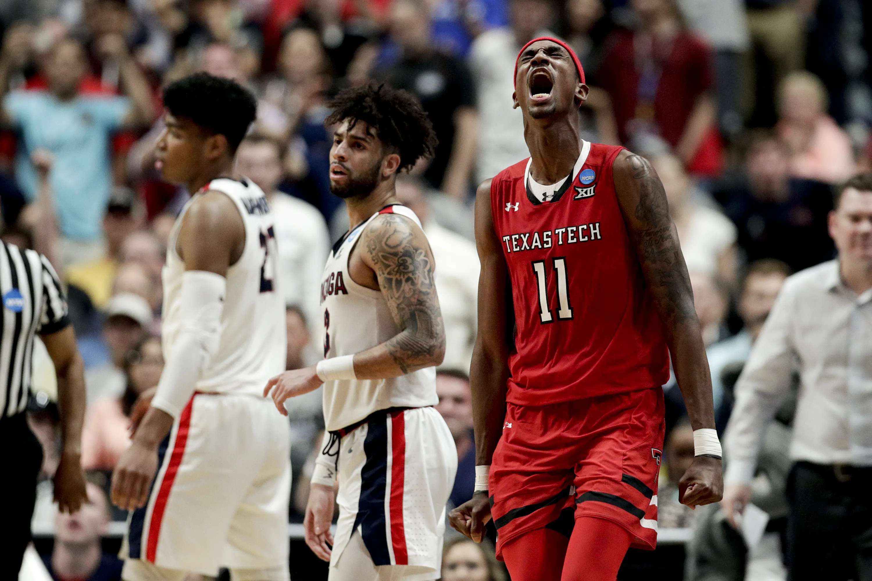 Texas Tech forward Tariq Owens celebrates after a blocked shot against Gonzaga during the second half of the West Regional final in the NCAA men's college basketball tournament Saturday, March 30, 2019, in Anaheim, Calif. Texas Tech won 75-69. (Photo by Jae C. Hong/AP Photo)