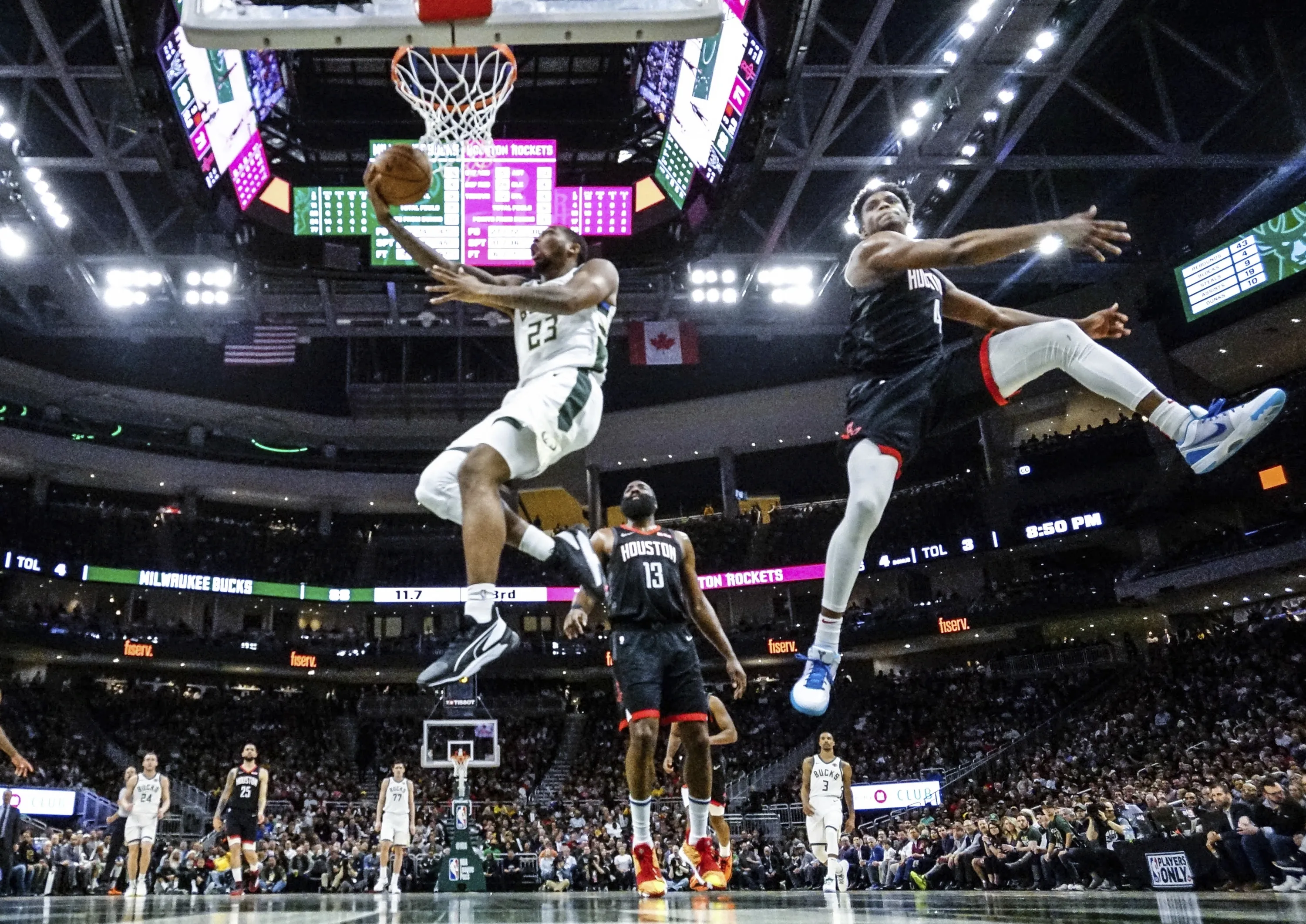 Milwaukee Bucks' Sterling Brown shoots past Houston Rockets' Danuel House Jr. during the second half of an NBA basketball game Tuesday, March 26, 2019, in Milwaukee. The Bucks won 108-94. (Photo by Morry Gash/AP Photo)