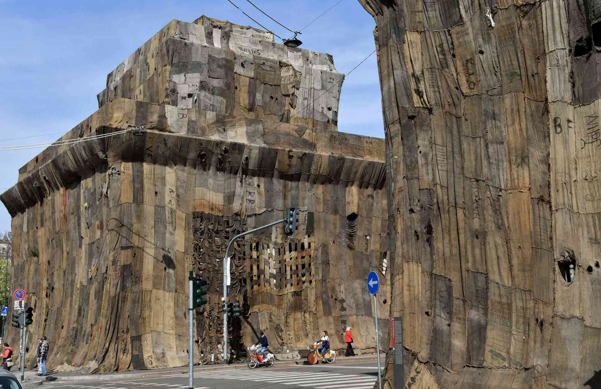 19th century's Porta Venezia historical gates are wrapped in jute sacks as part of the installation “A friend” by Ghanian artist Ibrahim Mahama, in the wake of Milan' Art Week, in Milan, Italy, Monday, April 1, 2019. (Photo by Daniel Dal Zennaro/ANSA via AP Photo)