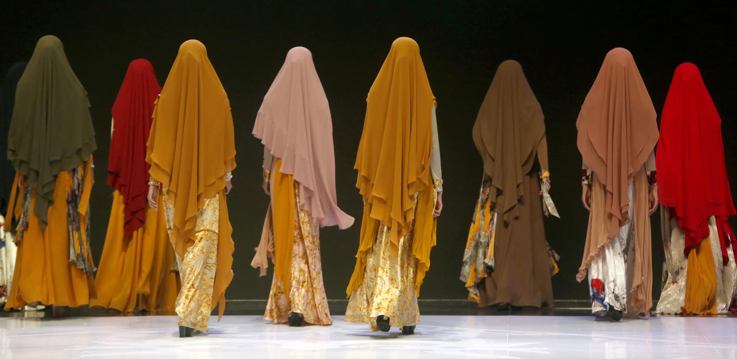 Models present creations by Indonesian designer Lina Sukijo during the Indonesia Fashion Week 2019 in Jakarta, Indonesia, 31 March 2019. (Photo by Adi Weda/EPA/EFE)