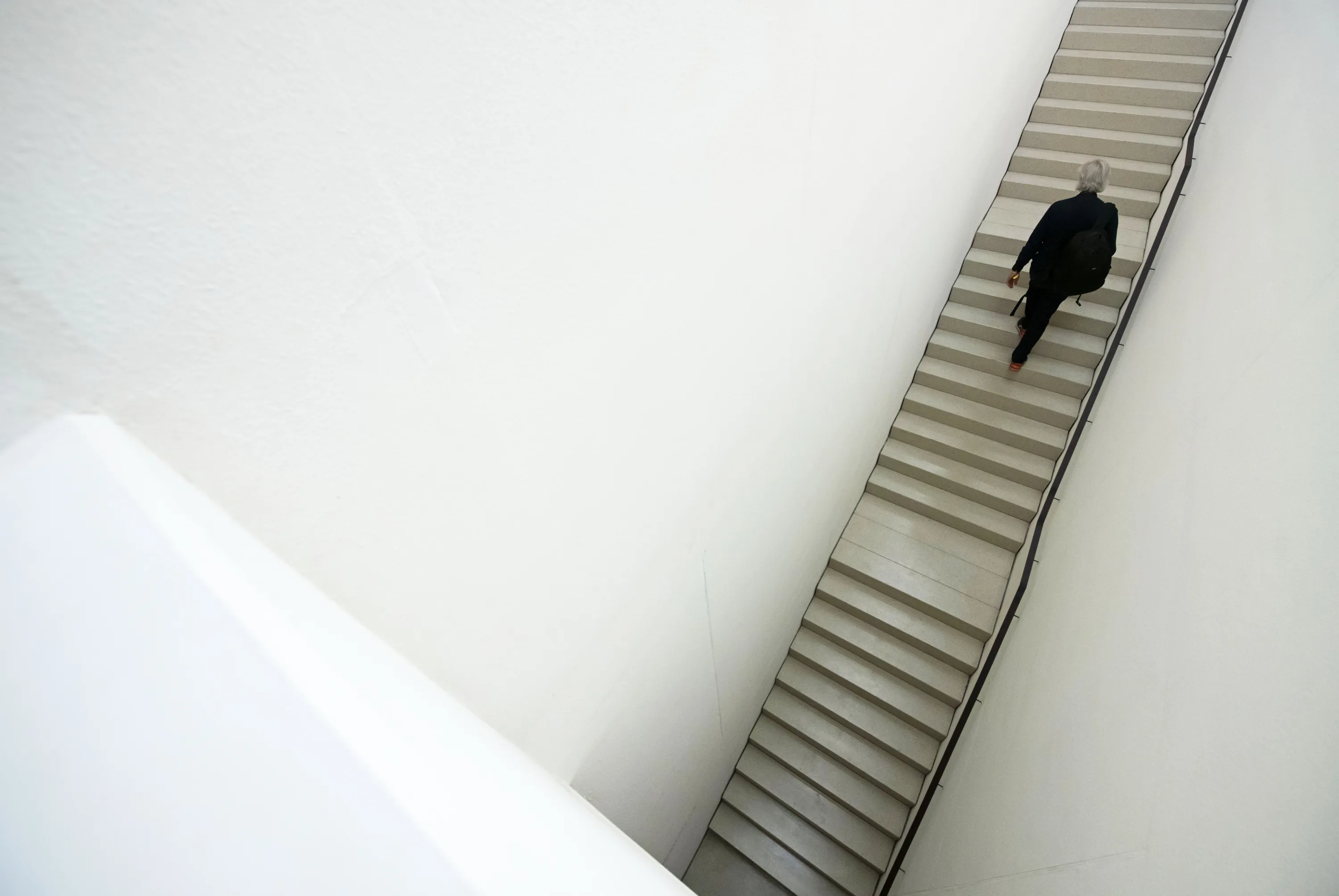 A visitor goes upstairs during the press preview prior to the opening of the new Bauhaus Museum of the “Klassik Stiftung Weimar” (Classic Foundation Weimar) in Weimar, Germany, Thursday, April 4, 2019. The museum designed by Berlin-based architect Heike Hanada will focus on the early Bauhaus that was founded in Weimar in 1919 and stayed there until 1925. The official opening of the new Bauhaus Museums will take place on Friday, April 5, 2019. (Photo by Jens Meyer/AP Photo)