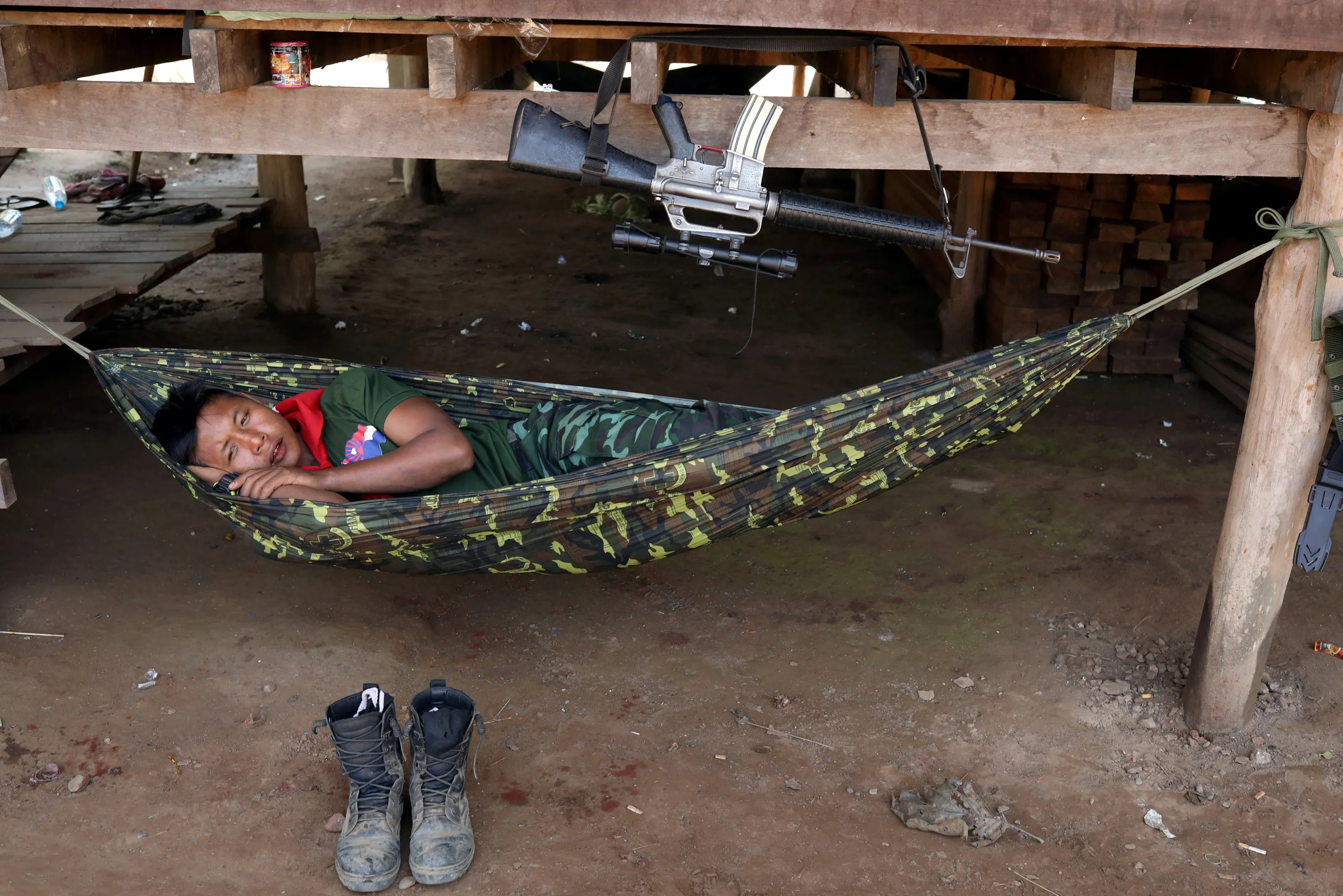 A soldier of Karen National Union (KNU) takes a rest during the 70th anniversary of Karen National Revolution Day in Kaw Thoo Lei, Kayin state, Myanmar on January 31, 2019. (Photo by Ann Wang/Reuters)