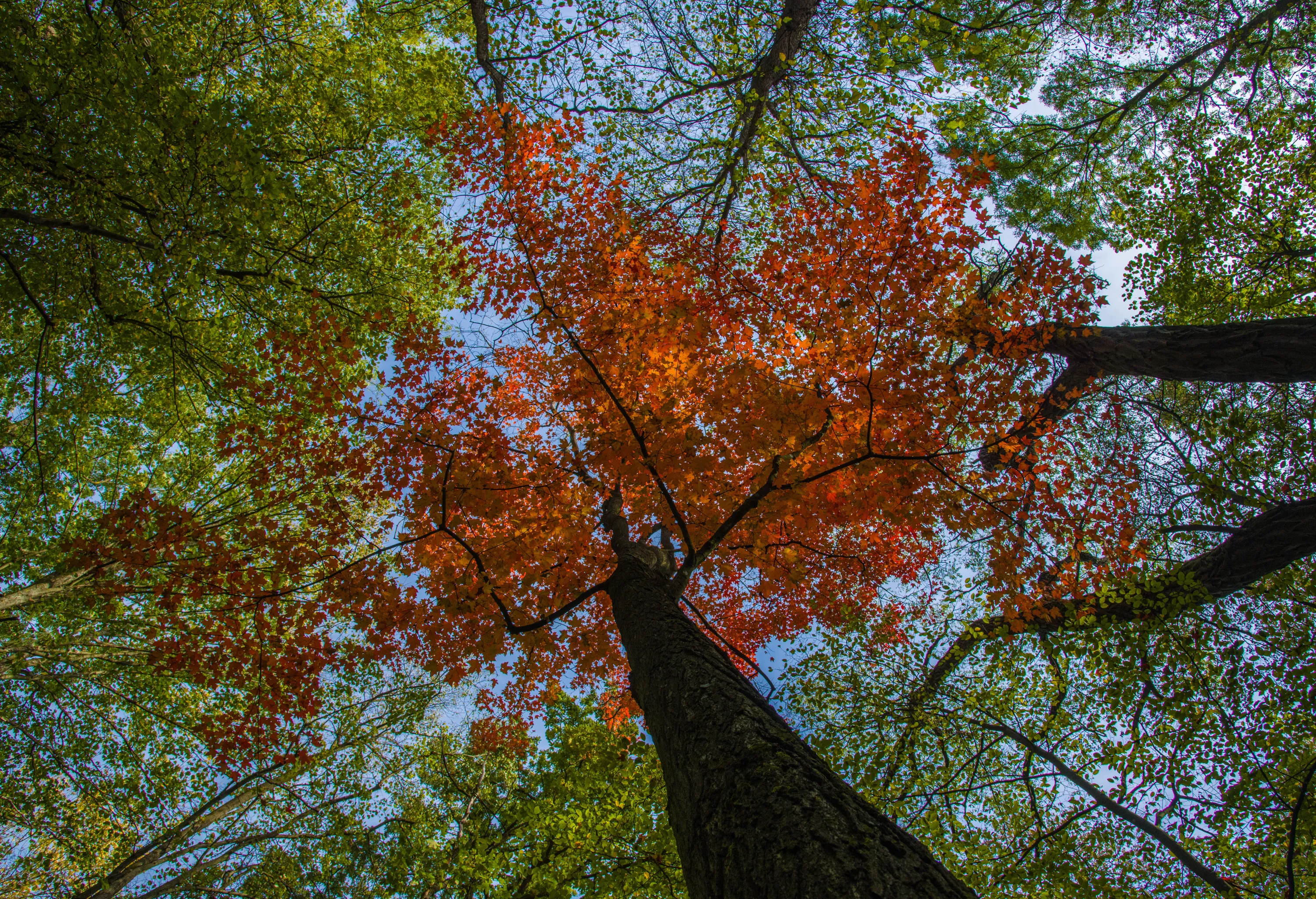 Autumn colour on a maple tree in the Stobbertal nature reserve in Märkisch-Oderland, Germany on October 8, 2018. (Photo by Picture-Alliance/Barcroft Images)