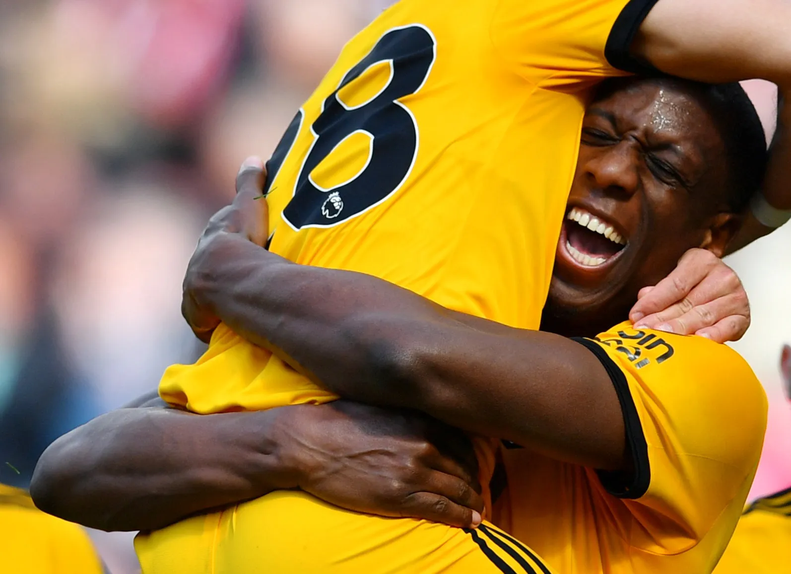 Willy Boly of Wolverhampton Wanderers celebrates after scoring his team's first goal during the Premier League match between Southampton FC and Wolverhampton Wanderers at St Mary's Stadium on April 13, 2019 in Southampton, United Kingdom. (Photo by Dylan Martinez/Reuters)