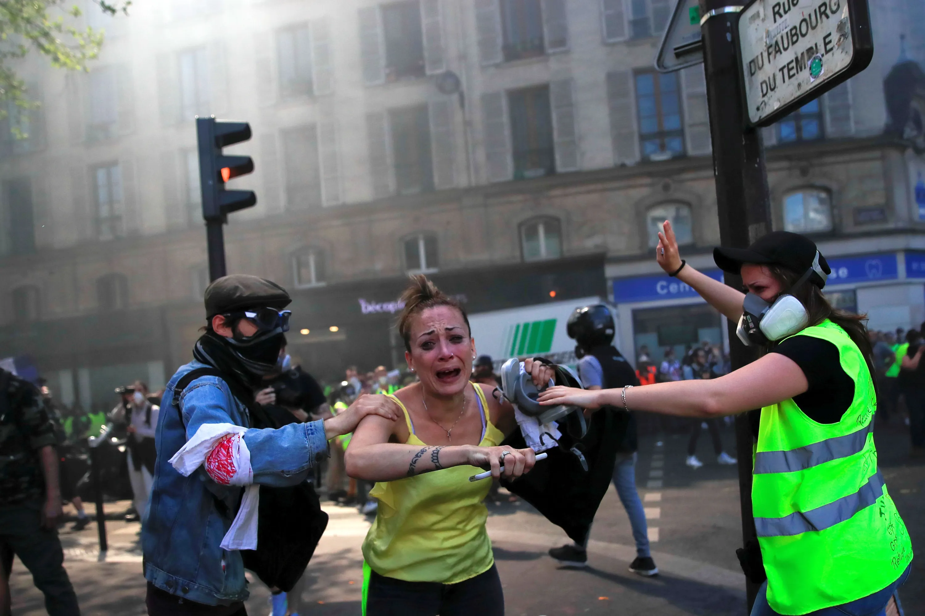 A protester reacts at a demonstration during Act XXIII (the 23rd consecutive national protest on Saturday) of the yellow vests movement in Paris, France, April 20, 2019. (Photo by Gonzalo Fuentes/Reuters)