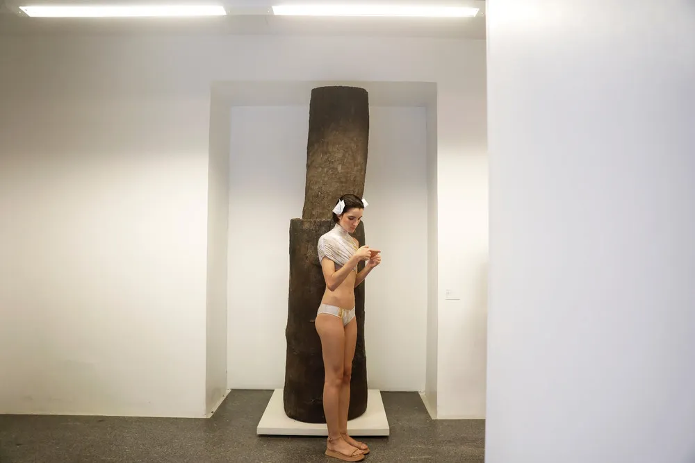 A model looks at her mobile phone backstage before Lenny Niemeyer show during Sao Paulo Fashion Week in Sao Paulo, Brazil, April 23, 2019. (Photo by Nacho Doce/Reuters)