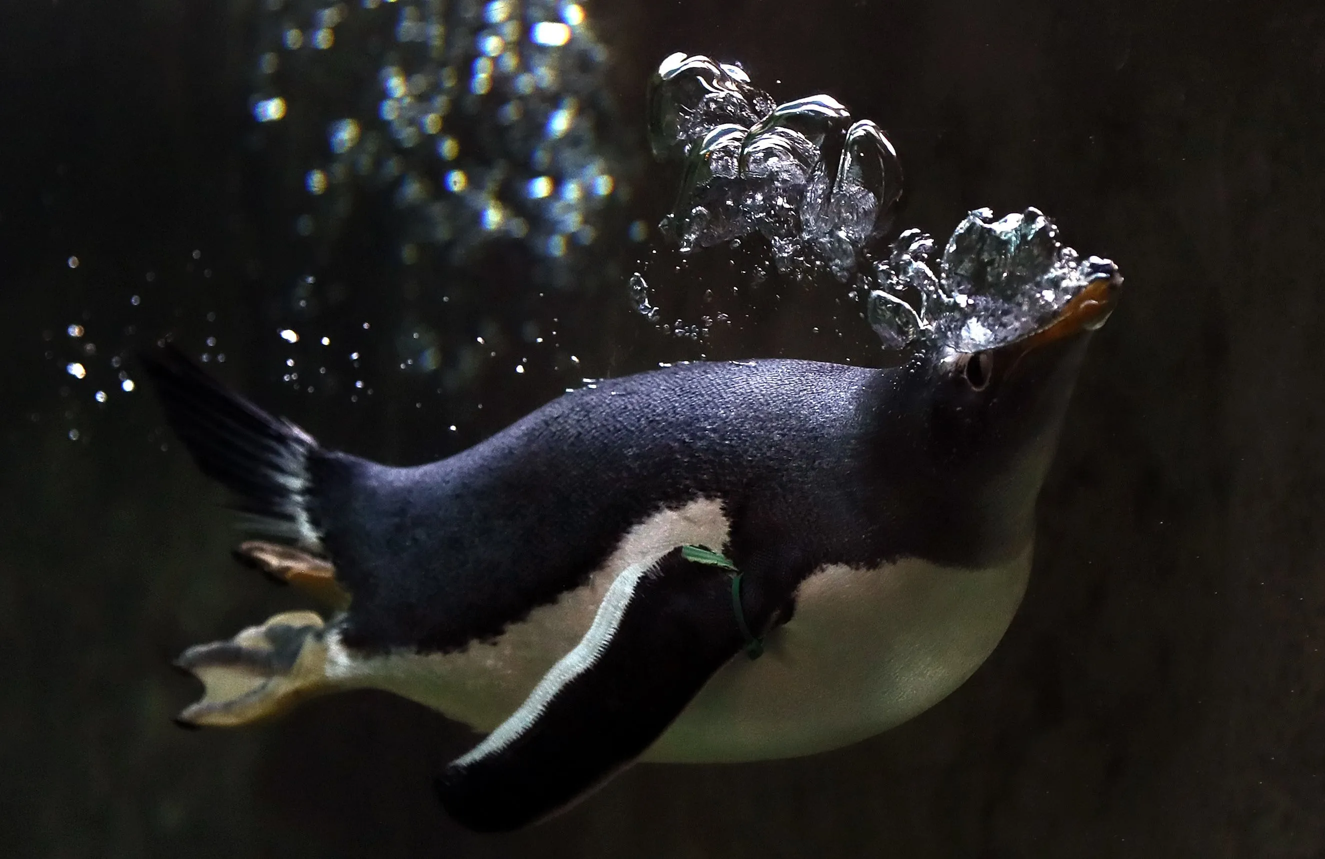 A spectacled penguin swims in a pool in their enclosure at the Zoo in Moscow, Russia on April 25, 2019. (Photo by Yuri Kochetkov/EPA/EFE/Rex Features/Shutterstock)