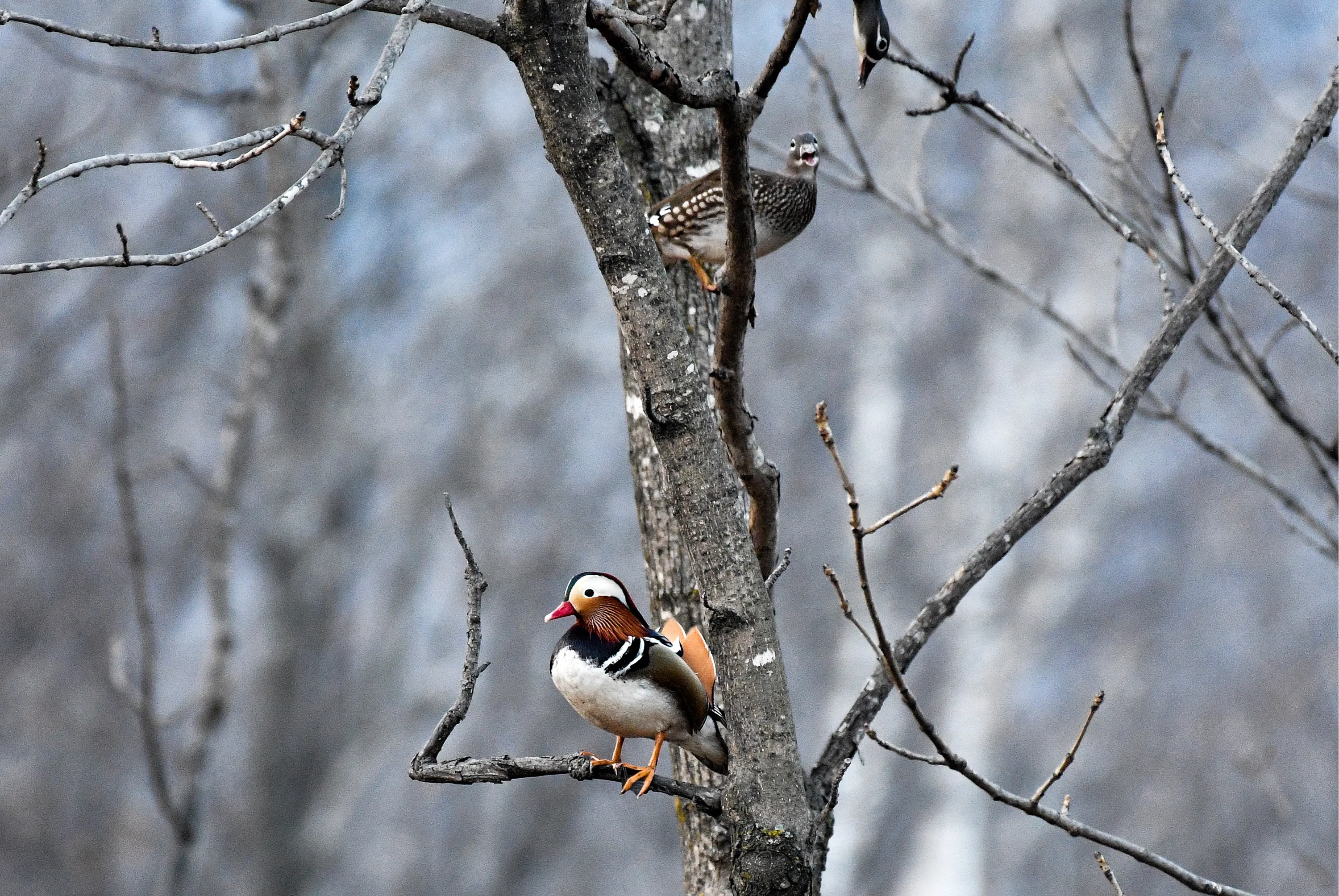 Mandarin ducks on the Solyonaya River in Vladivostok, Russia on April 19, 2019. Its world population around 25,000 pairs in total. Russian laws ban hunting mandarin ducks listed in the Red Book as an endangered species. (Photo by Yuri Smityuk/TASS)