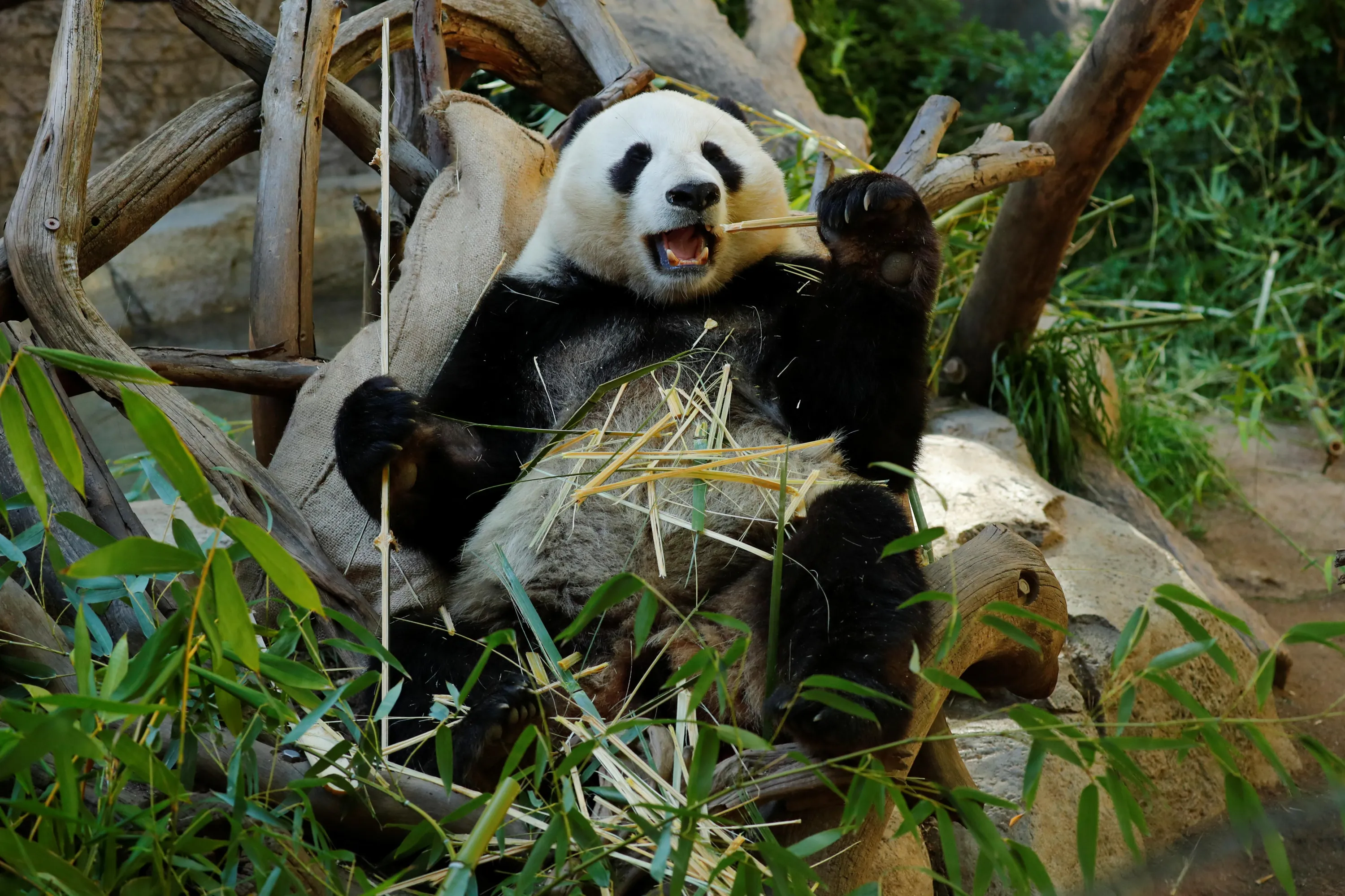 Giant male panda Xiao Liwu eats a meal of bamboo at the San Diego Zoo prior to his repatriation to China with his mother Bai Yun, bringing an end to a 23-year-long panda research program in San Diego, California, U.S., April 18, 2019. Picture taken April 18, 2019. (Photo by Mike Blake/Reuters)