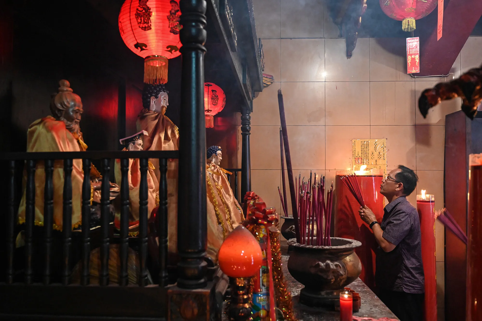 An Indonesian man holds burning incense at a temple in Jakarta on February 19, 2019 to mark the Cap Go Meh Festival. Chinese Indonesians are celebrating the Cap Go Meh Festival, which marks the 15th and final day of the two-week Lunar New Year festivities. (Photo by Bay Ismoyo/AFP Photo)
