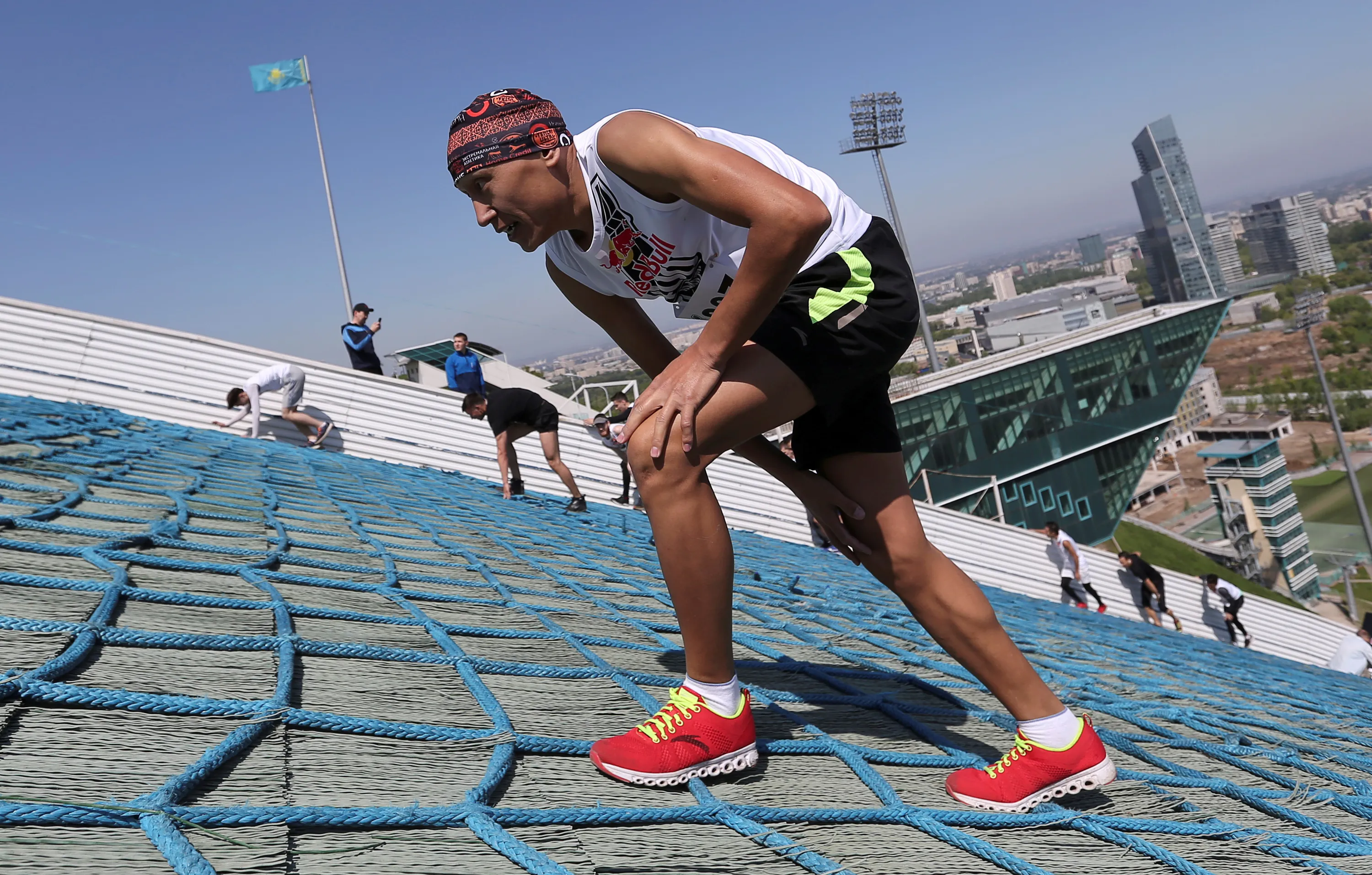 Athletes compete during the Red Bull 400 uphill sprint at the Sunkar International Ski Jumping Complex in Almaty, Kazakhstan on April 28, 2019. (Photo by Pavel Mikheyev/Reuters)