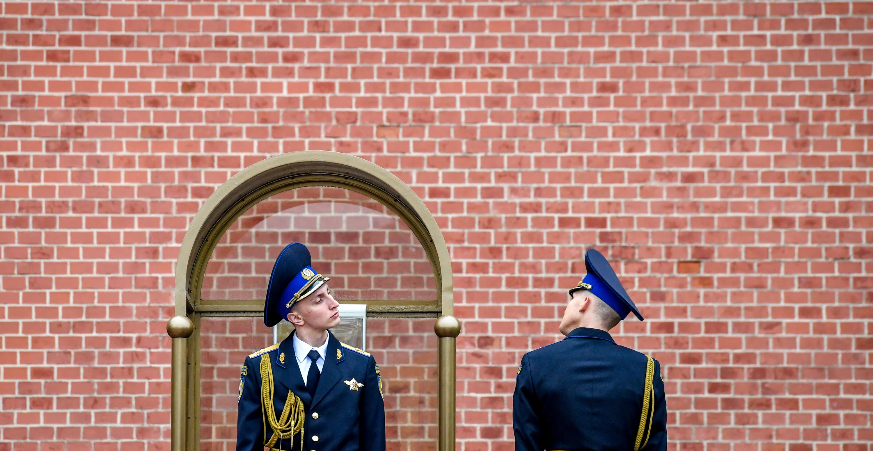 Russian honour guards attend the change of the guard ceremony at the Tomb of the Unknown Soldier in Moscow on May 9, 2019. - Russia celebrates the 74th anniversary of the victory over Nazi Germany. (Photo by Yuri Kadobnov/AFP Photo)