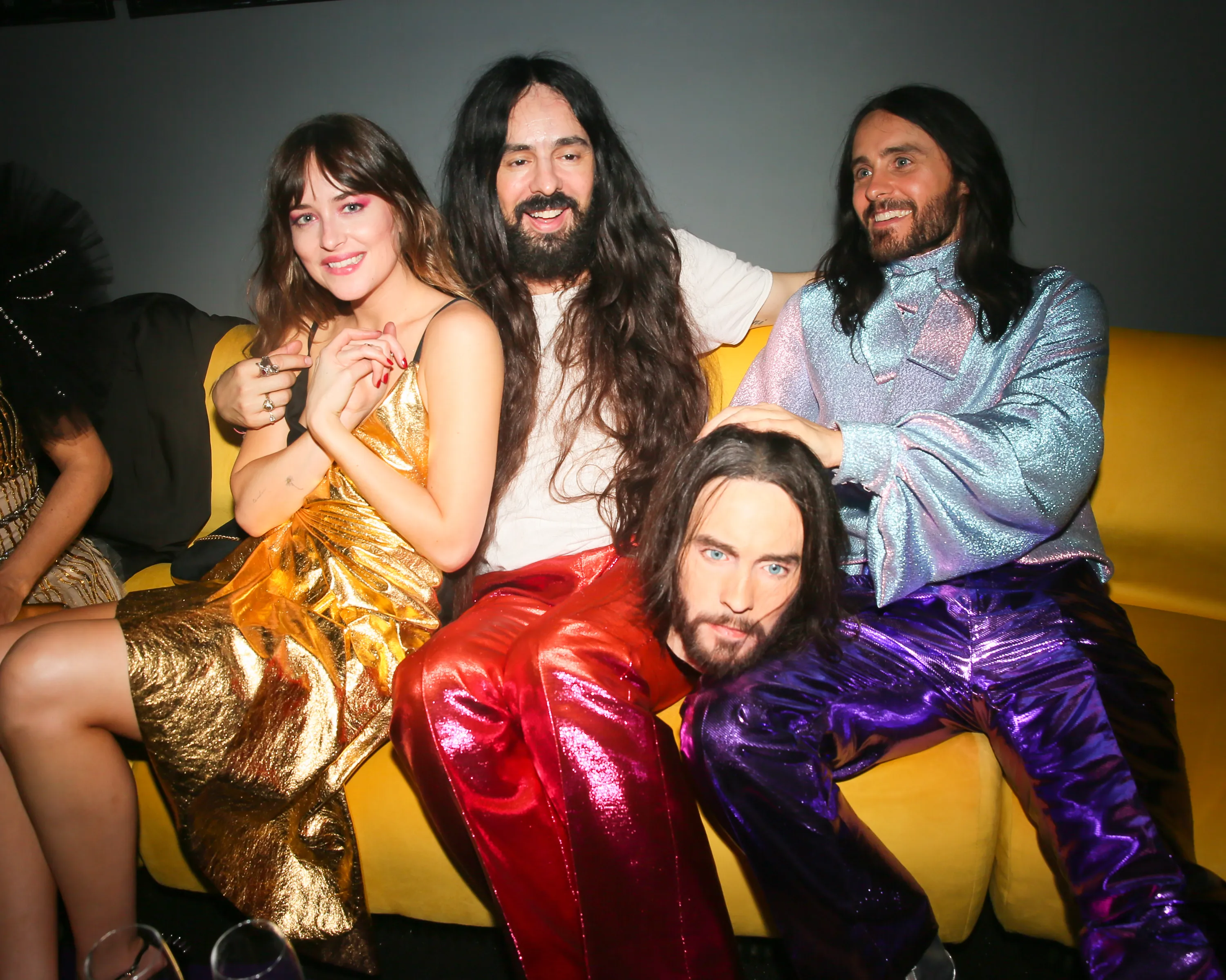 Dakota Johnson, Alessandro Michele and Jared Leto at the Gucci Met Gala : After Party on May 6, 2019 in New York City. (Photo by Madison McGaw/Angela Pham & Jo)