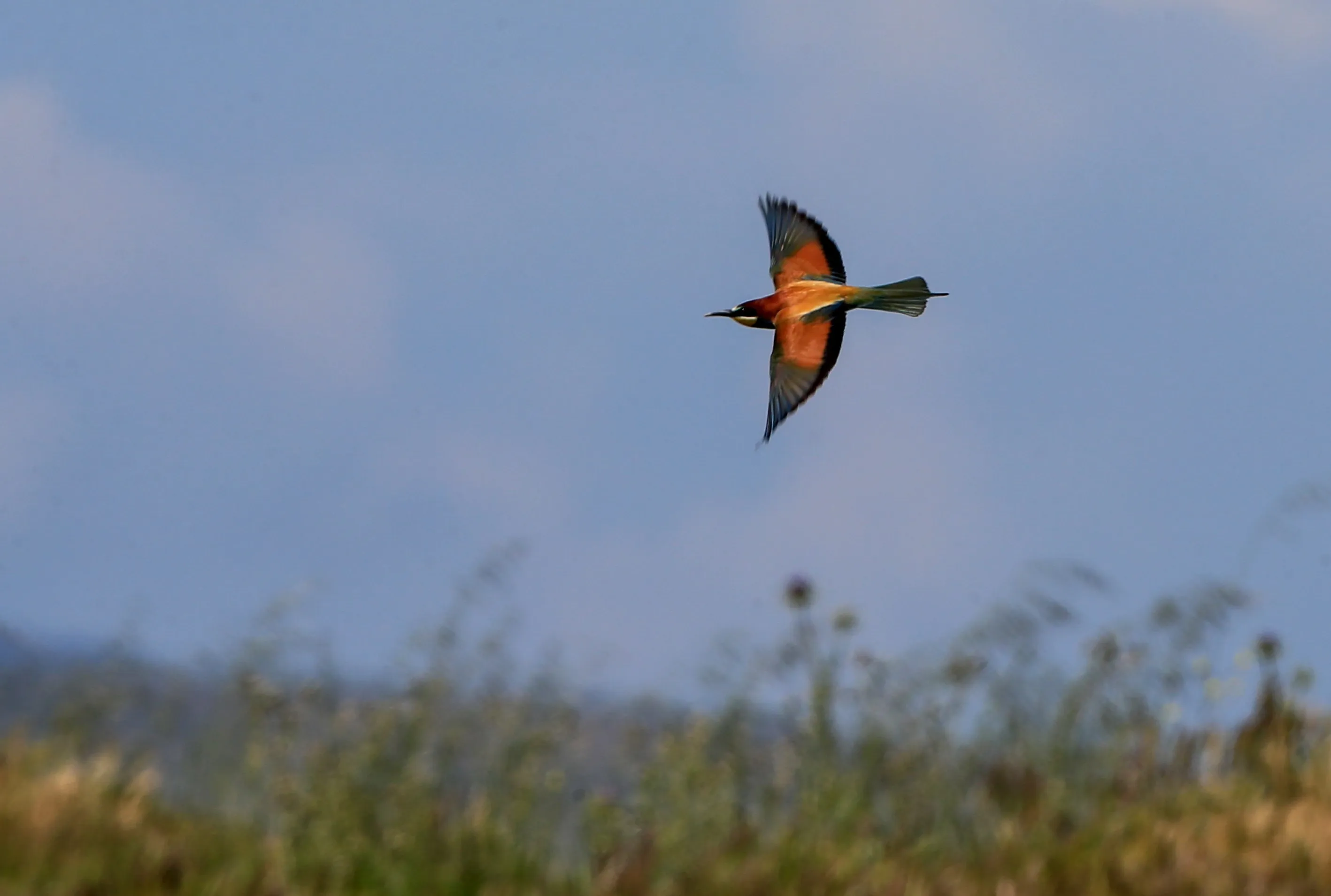 A bee- eater flying over the Gediz delta of Izmir, Turkey on May 03, 2019. (Photo by Mahmut Serdar Alakus/Anadolu Agency/Getty Images)