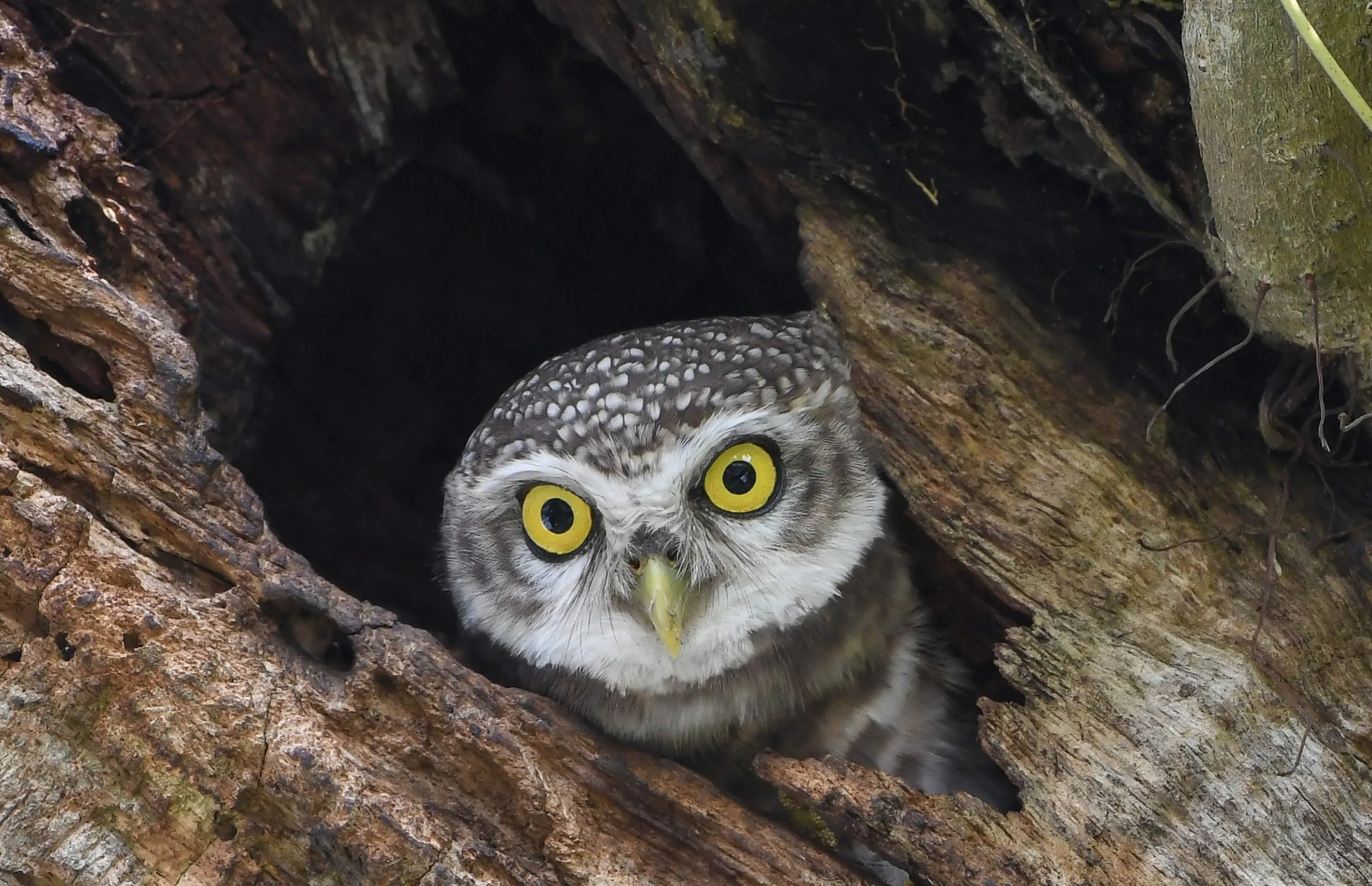 An Indian spotted owl looks out from its nest in a tree in Guwahati on May 7, 2019. (Photo by Biju Boro/AFP Photo)