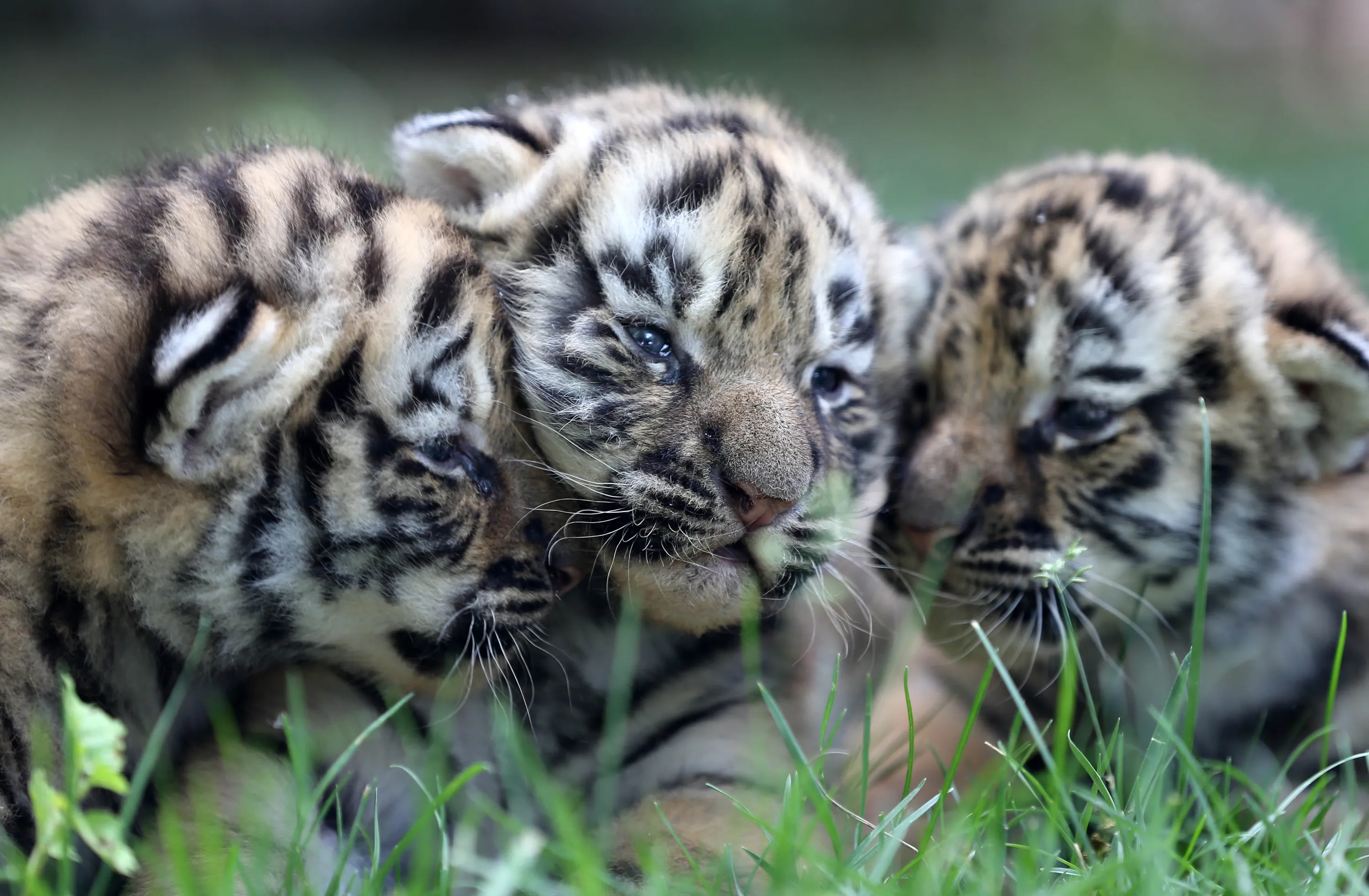 Four tiger cubs meet the public for the first time at Jinbao Zoo on May 14, 2019 in Weifang, Shandong Province of China. (Photo by Zhang Chi/VCG via Getty Images)