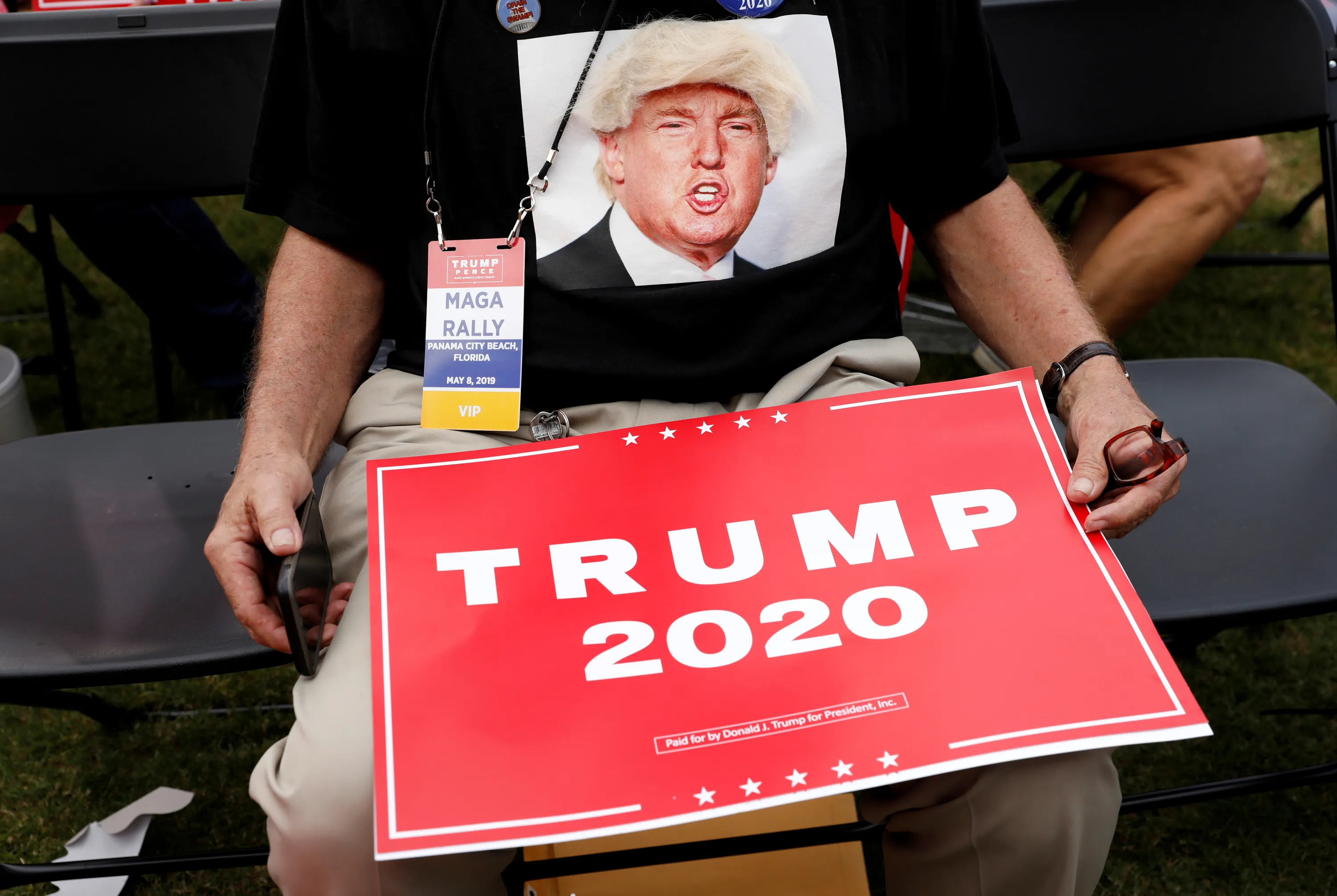 A supporter holds a campaign placard while waiting for the arrival of U.S. President Donald Trump during a campaign rally in Panama City, Florida, U.S., May 8, 2019. (Photo by Kevin Lamarque/Reuters)
