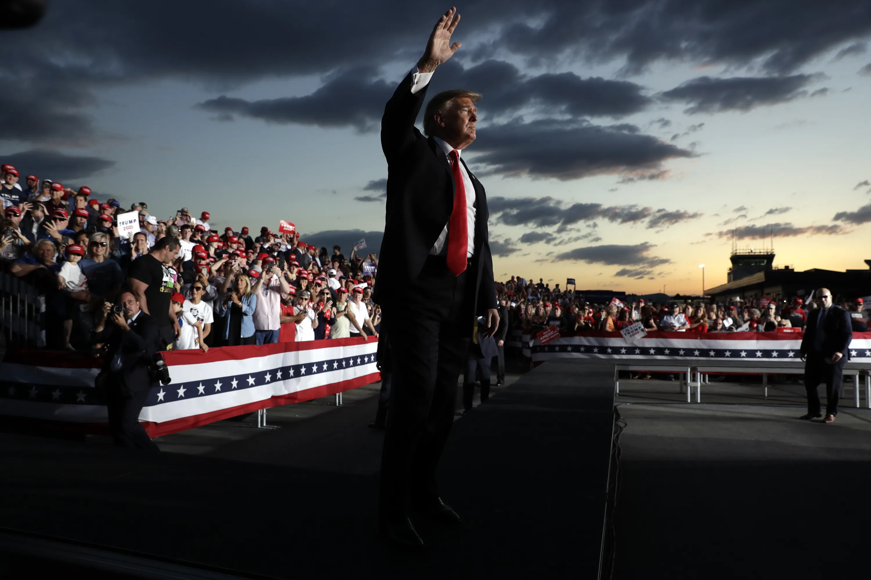 President Donald Trump waves to the crowd as he finishes speaking at a campaign rally, Monday, May 20, 2019, in Montoursville, Pa. (Photo by Evan Vucci/AP Photo)