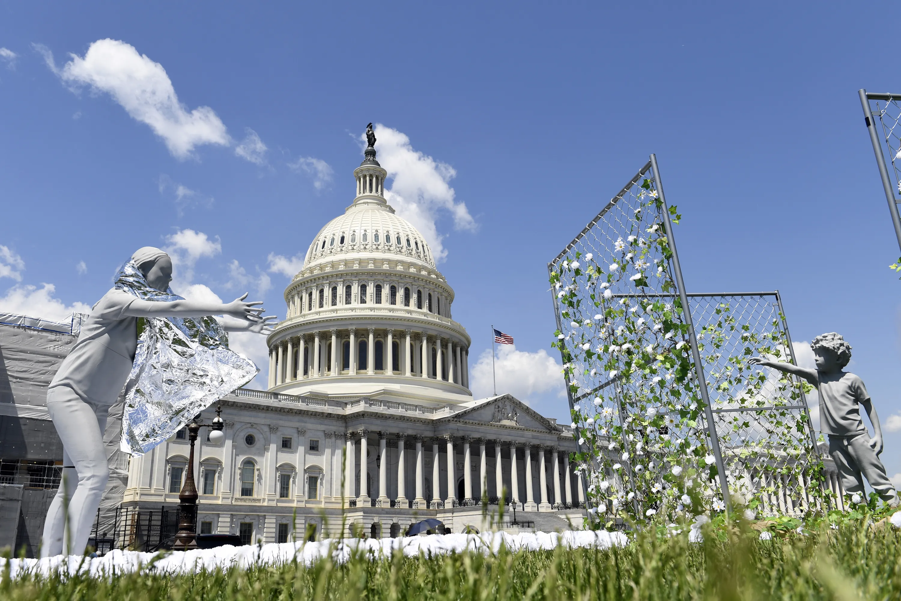 An art installation, on display outside the Capitol in Washington, Tuesday, May 7, 2019, shows a mother reaching out to her child to mark the first anniversary of the Trump administration's “zero tolerance” family separation policy. (Photo by Susan Walsh/AP Photo)