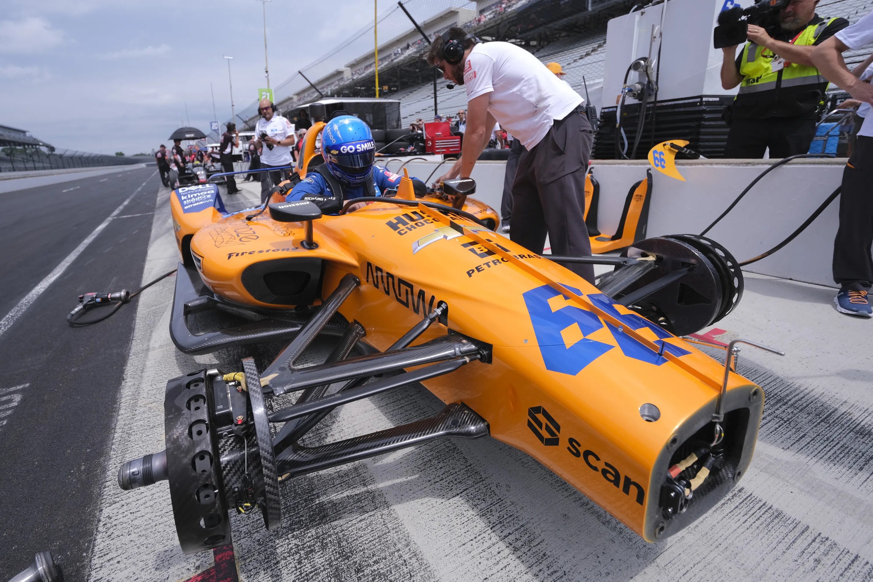 Fernando Alonso, of Spain, climbs into his car during practice for the Indianapolis 500 IndyCar auto race at Indianapolis Motor Speedway, Friday, May 17, 2019 in Indianapolis. (Photo by A.J. Mast/AP Photo)