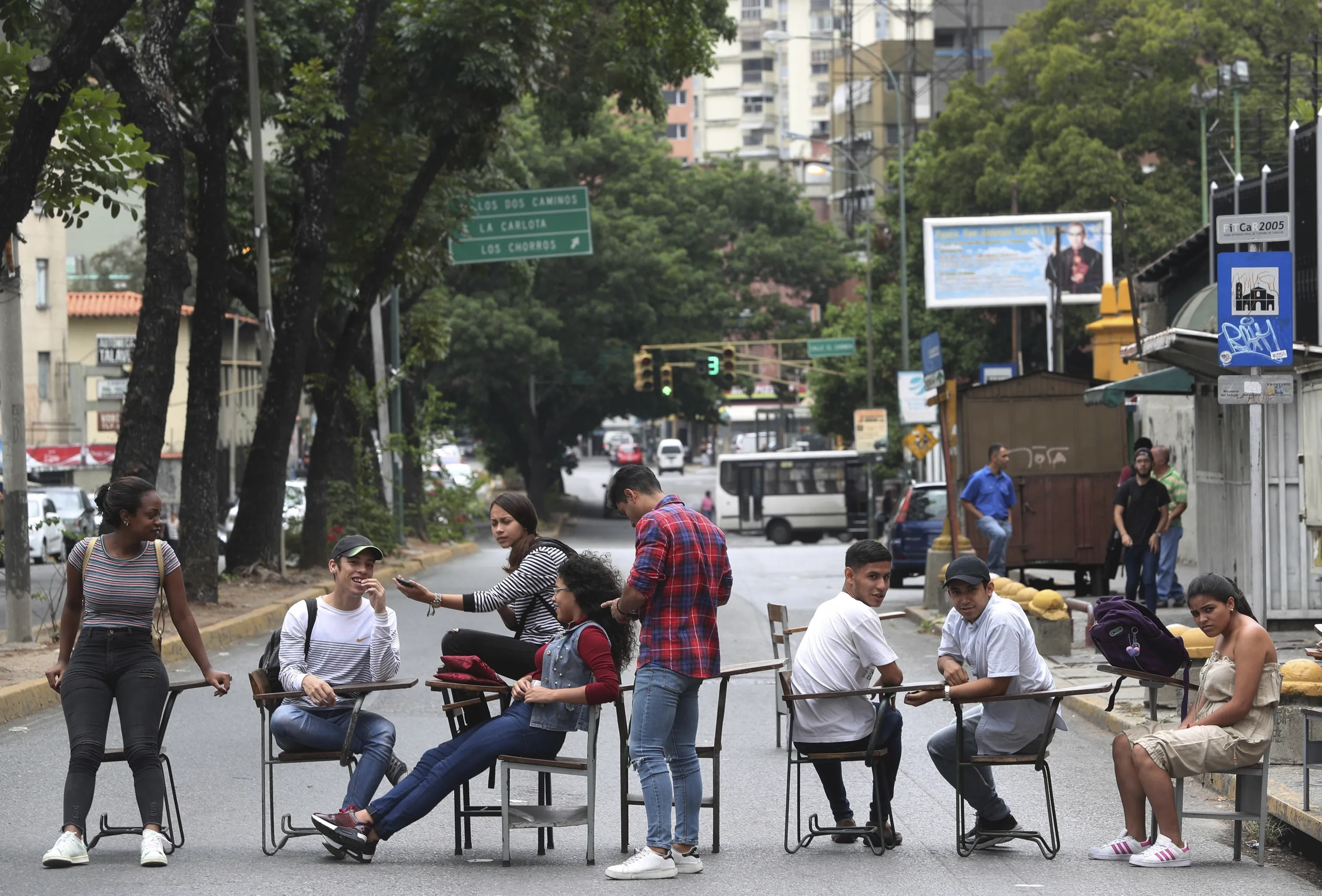 Instituto de Nuevas Profesiones' student block an avenue to protest a tuition increase in Caracas, Venezuela, Wednesday, May 8, 2019. Venezuela has been in sharp decline for years, suffering from hyperinflation and shortages of food and medicine. (Photo by Martin Mejia/AP Photo)