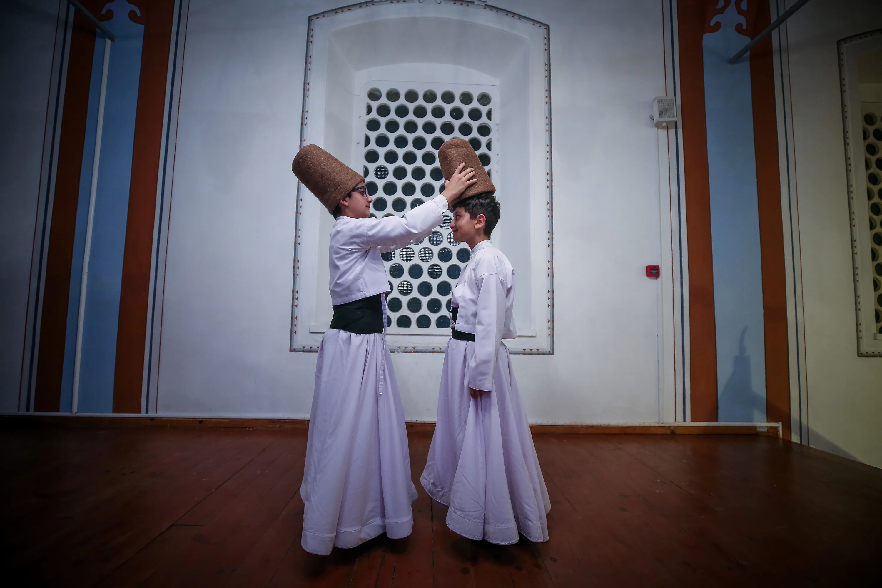 Dervishes are seen at Gelibolu Lodge of Mevlevi Dervishes in Canakkale, Turkey on May 12, 2019. Sema ceremonies are organized regularly at Gelibolu Lodge of Mevlevi Dervishes in every month. (Photo by Sergen Sezgin/Anadolu Agency/Getty Images)