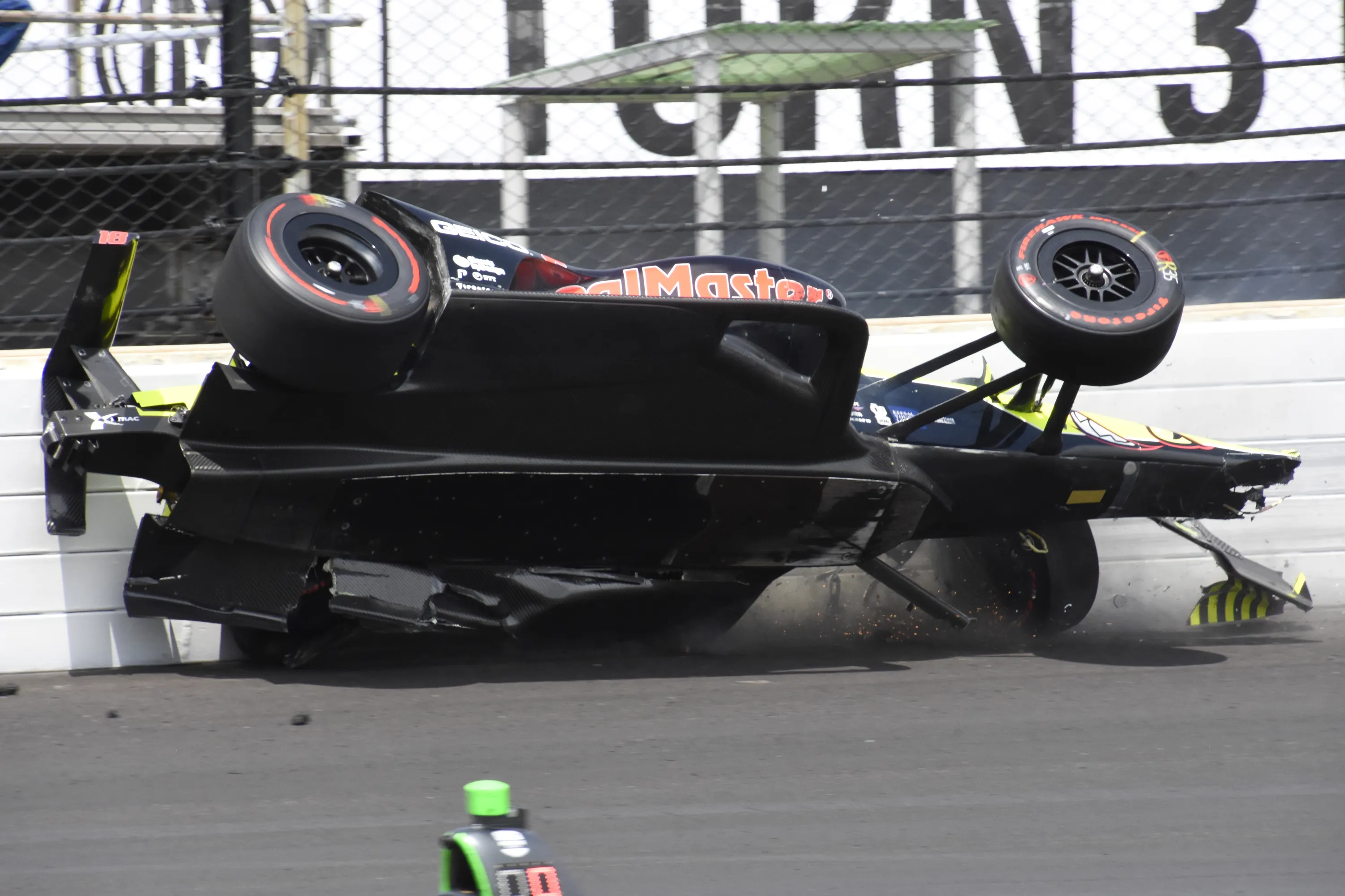 The car driven by Sebastien Bourdais, of France, hits the wall in the third turn during the Indianapolis 500 IndyCar auto race at Indianapolis Motor Speedway, Sunday, May 26, 2019, in Indianapolis. (Photo by Scott Anderson/AP Photo)