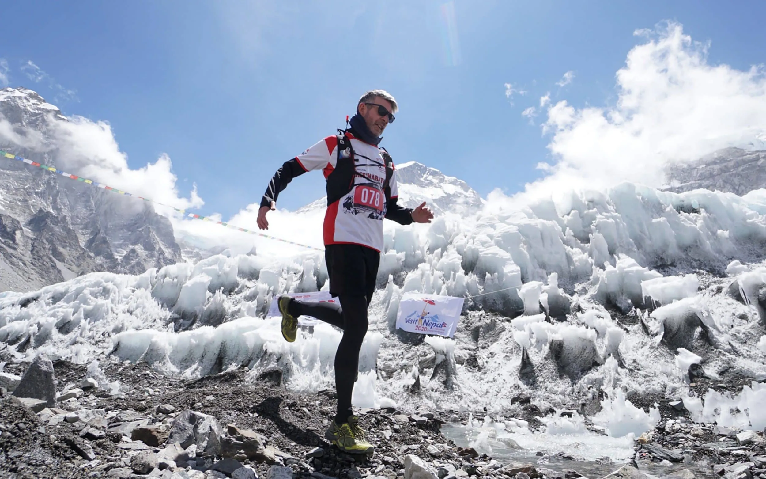 In this handout photograph released by the Tenzing-Hillary Everest Marathon on May 29, 2019 a runner competes in the world's highest marathon in the foothills of Mount Everest in the Solukhumbu district of Nepal. - More than 224 including 160 foreigners from 30 countries and local runners took part in the world's highest marathon to mark the anniversary of the first summit of the peak by Tenzing Norgay and Edmund Hillary on May 29, 1953. (Photo by Handout/Tenzing-Hillary Everest Marathon/AFP Photo)