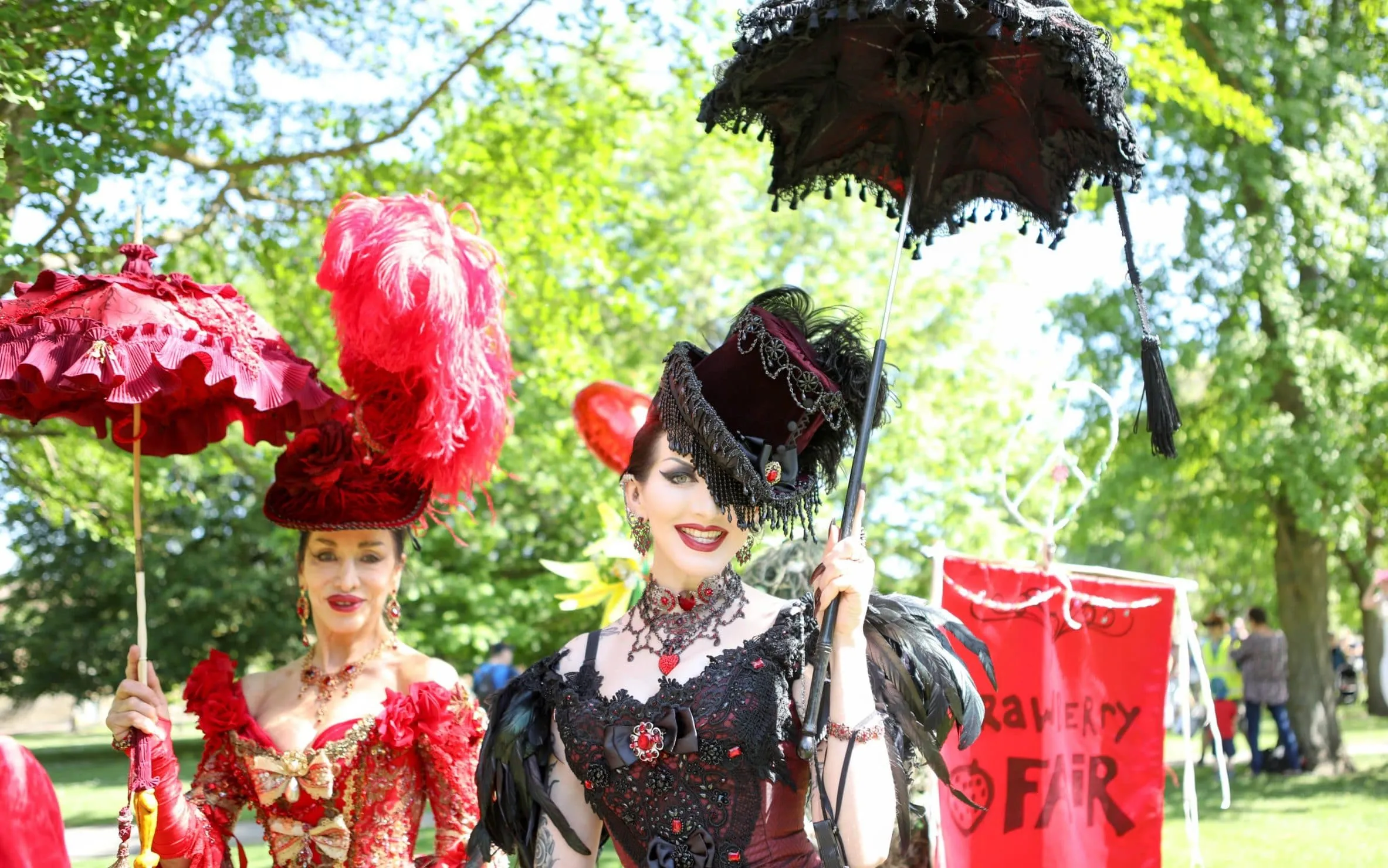 People take part in the Strawberry Fair parade in Cambridge, England on June 1, 2019. Thousands of revellers enjoy the free, independent, volunteer run festival of arts and music at the annual Strawberry Fair. (Photo by Penelope Barritt/Shutterstock)