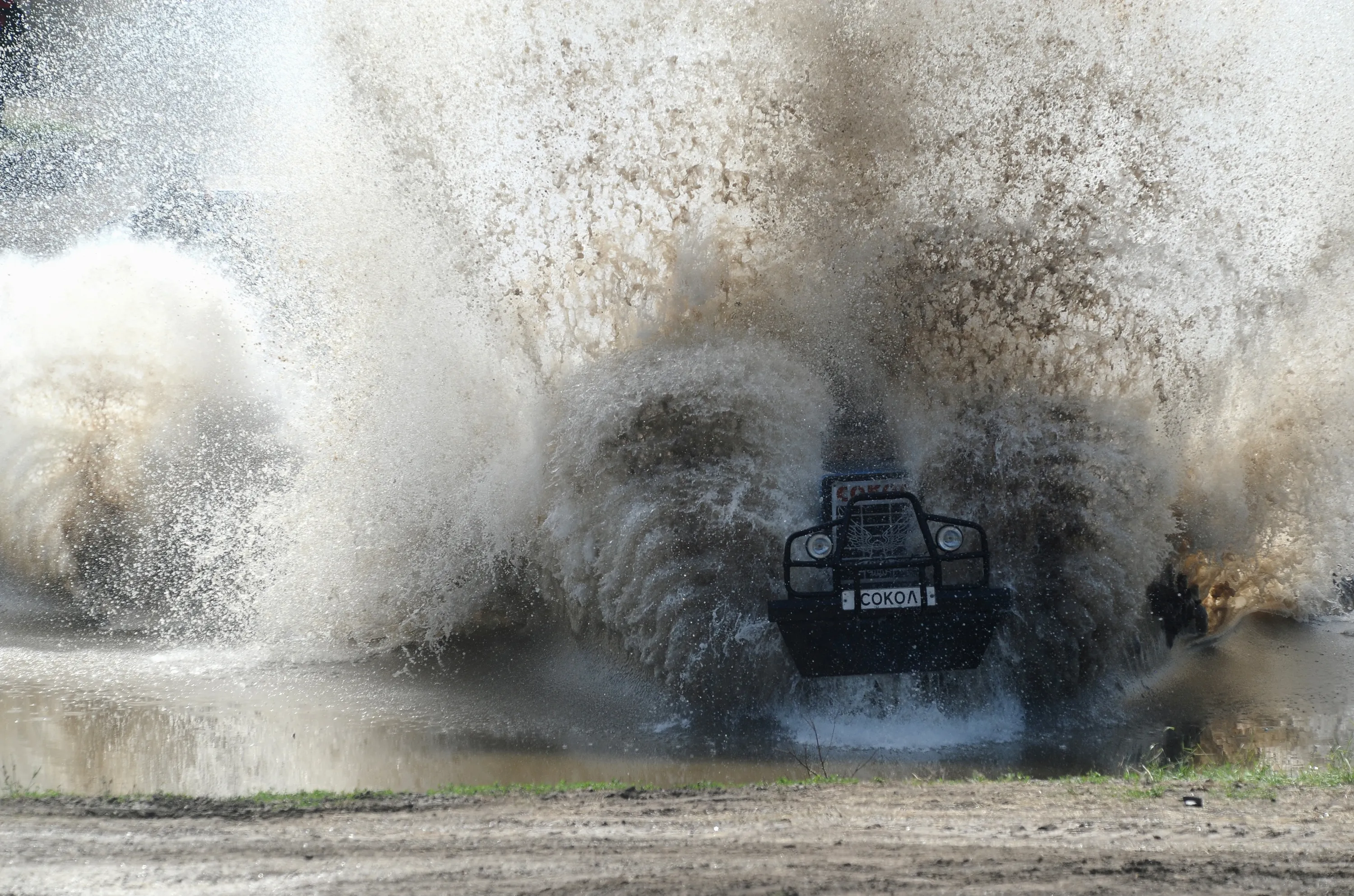 A participant attends a regional tractor racing competition Bizon-Track-Show outside of Rostov-on-Don, Russia on June 2, 2019. (Photo by Sergey Pivovarov/Reuters)