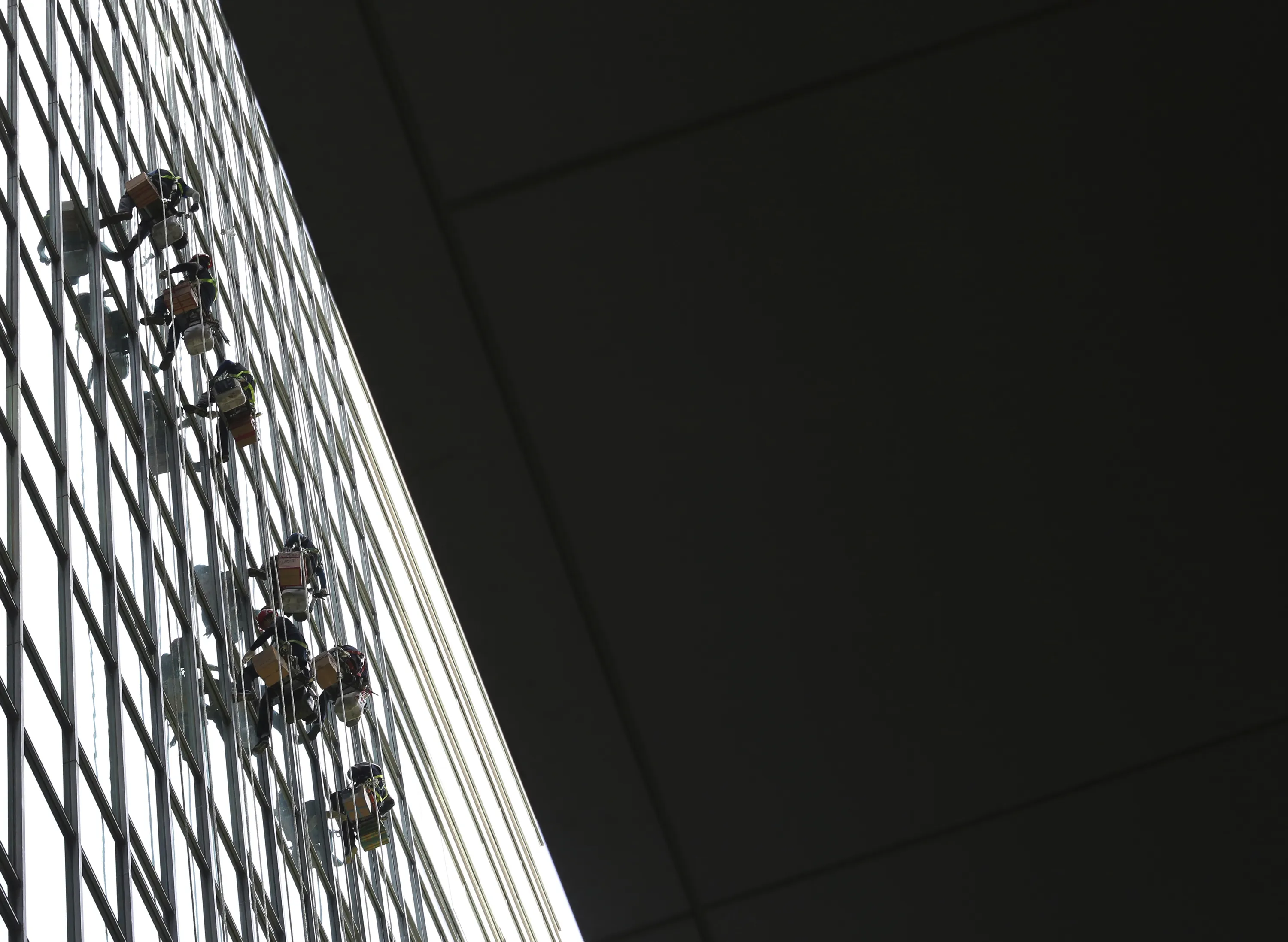 Workers hang on the ropes to attach silicone to windows on a building in Seoul, South Korea, Wednesday, May 29, 2019. (Photo by Ahn Young-joon/AP Photo)