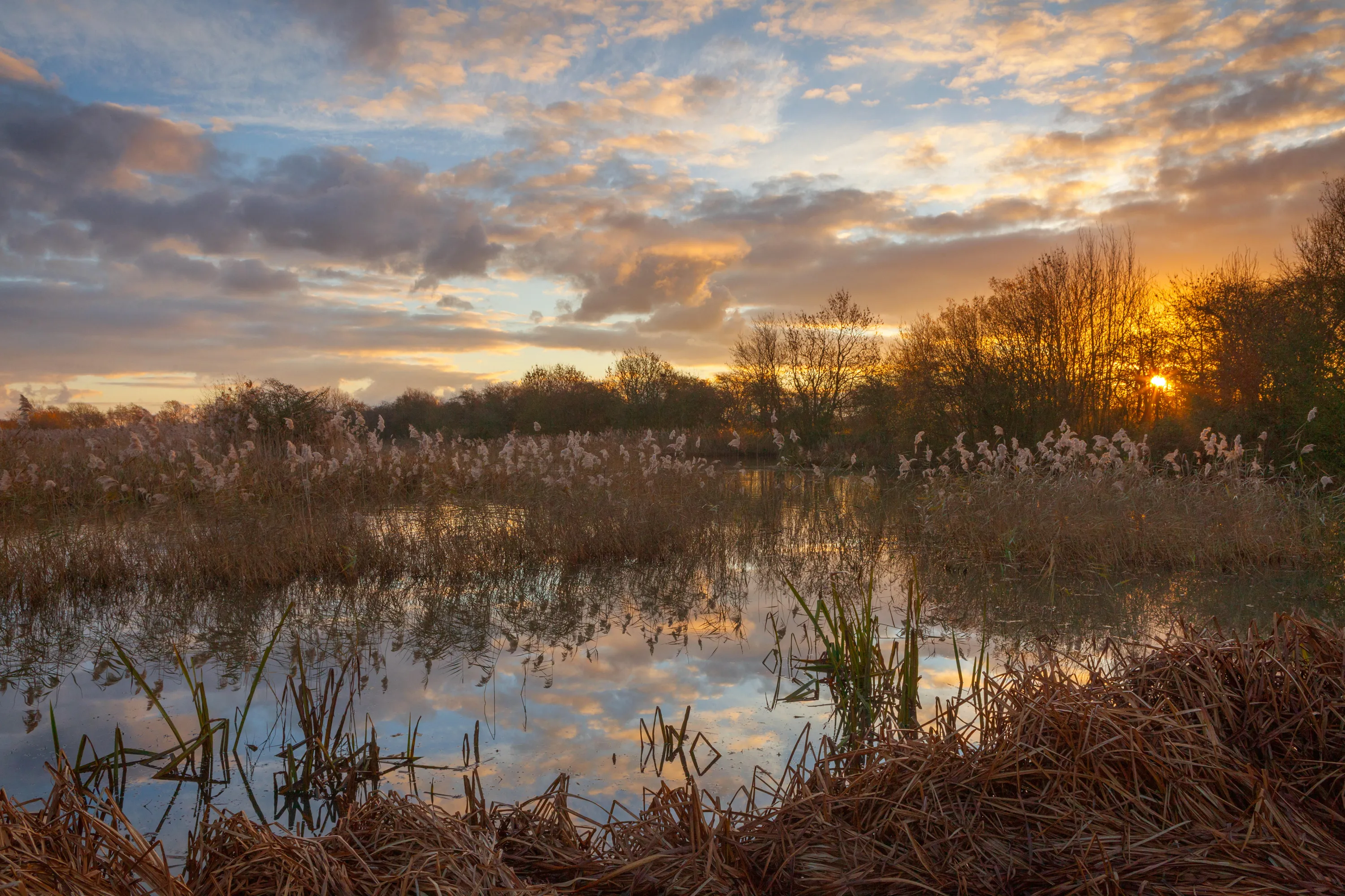 Sunrise at a Lincolnshire Wildlife Trust nature reserve in Barton-upon-Humber, North Lincolnshire, UK. (Photo by Lee Beel/Alamy Stock Photo)