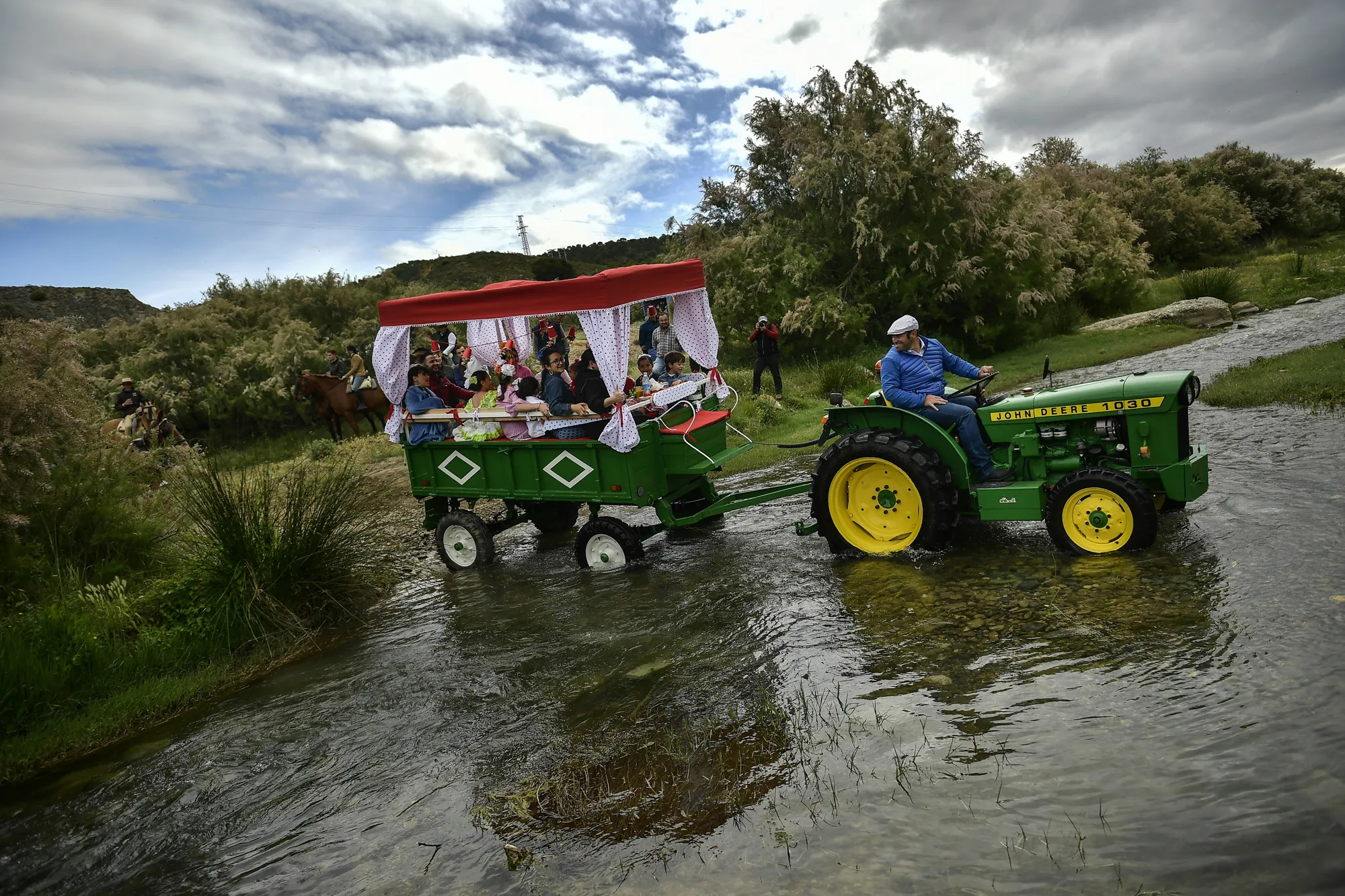 Devotees of the Rocio Virgin cross a river as they take part in the “Romeria de El Rocio” in the countryside outside Fitero, northern Spain, Saturday, May 25, 2019. (Photo by Alvaro Barrientos/AP Photo)