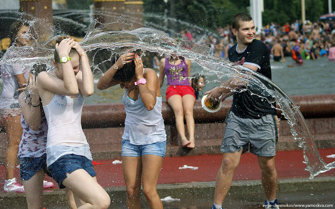Flashmob: Water Battle on All-Russian Exhibition Center in Moscow