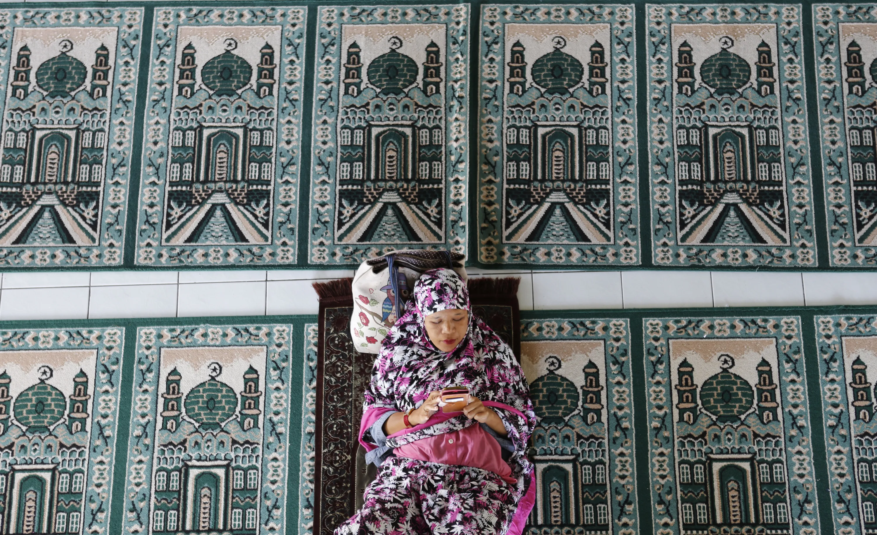 In this May 6, 2019, photo, a woman rests at a mosque during the first day of the holy fasting month of Ramadan in Bali, Indonesia. Muslims around the world marked the start of Ramadan on Monday, a month of intense prayer, dawn-to-dusk fasting and nightly feasts. (Photo by Firdia Lisnawati/AP Photo)
