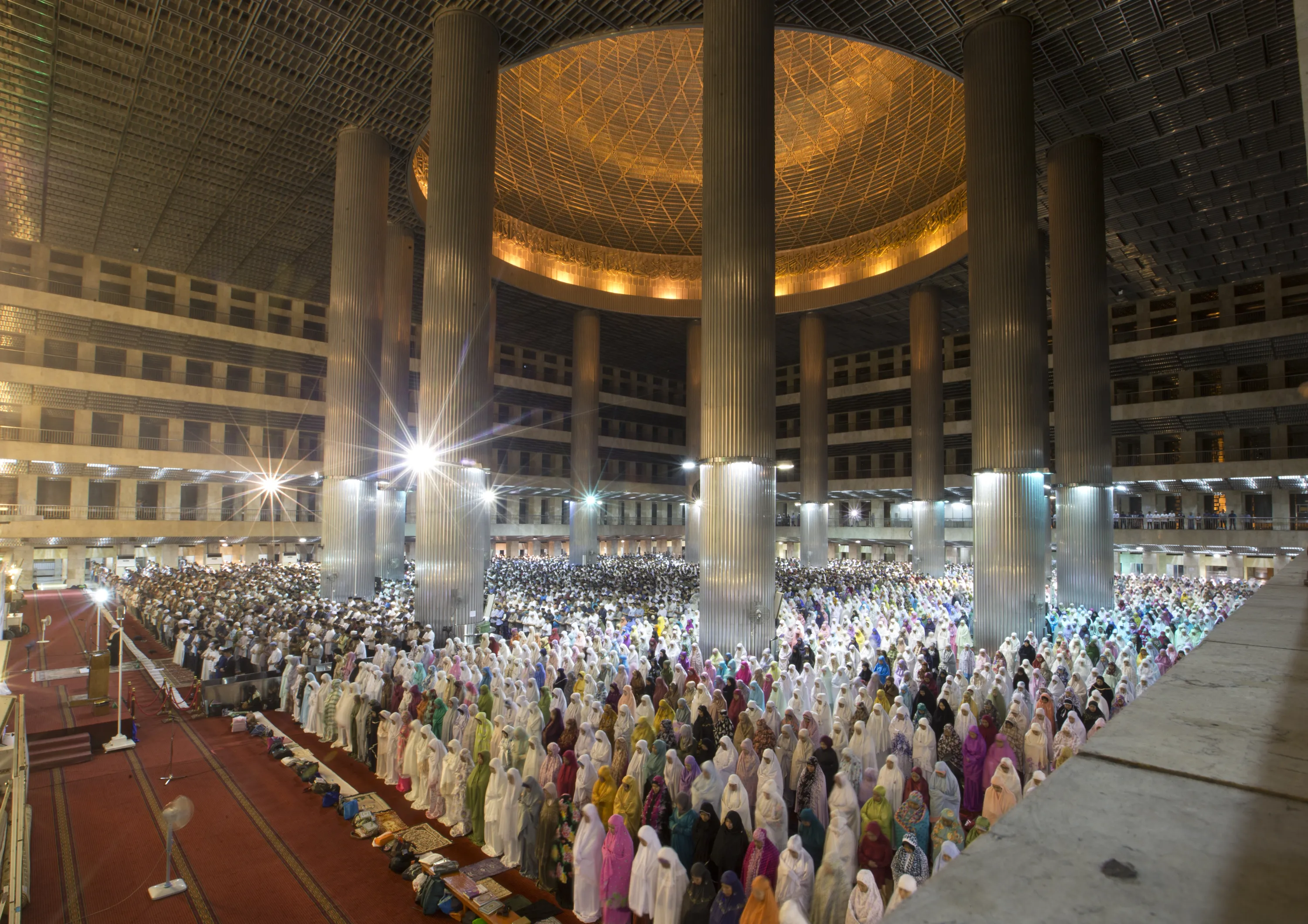 Indonesian Muslims perform an evening prayer called “tarawih” marking the first eve of the holy fasting month of Ramadan, at Istiqlal Mosque in Jakarta, Indonesia, Sunday, May 5, 2019. During Ramadan, the holiest month in Islamic calendar, Muslims refrain from eating, drinking, smoking and sex from dawn to dusk. (Photo by Achmad Ibrahim/AP Photo)