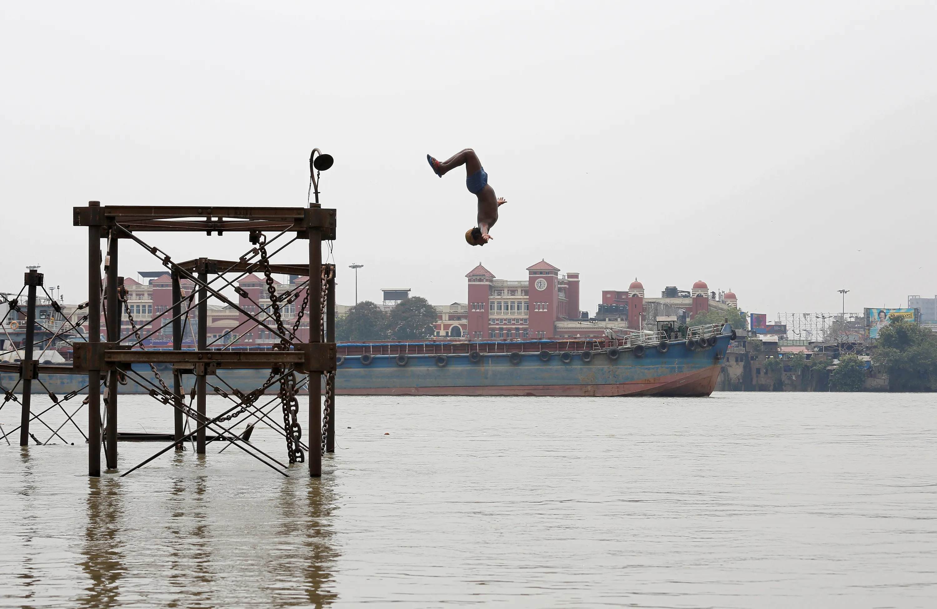 A boy jumps into the Ganges river to cool off on a hot summer day in Kolkata, India, June 3, 2019. (Photo by Rupak De Chowdhuri/Reuters)