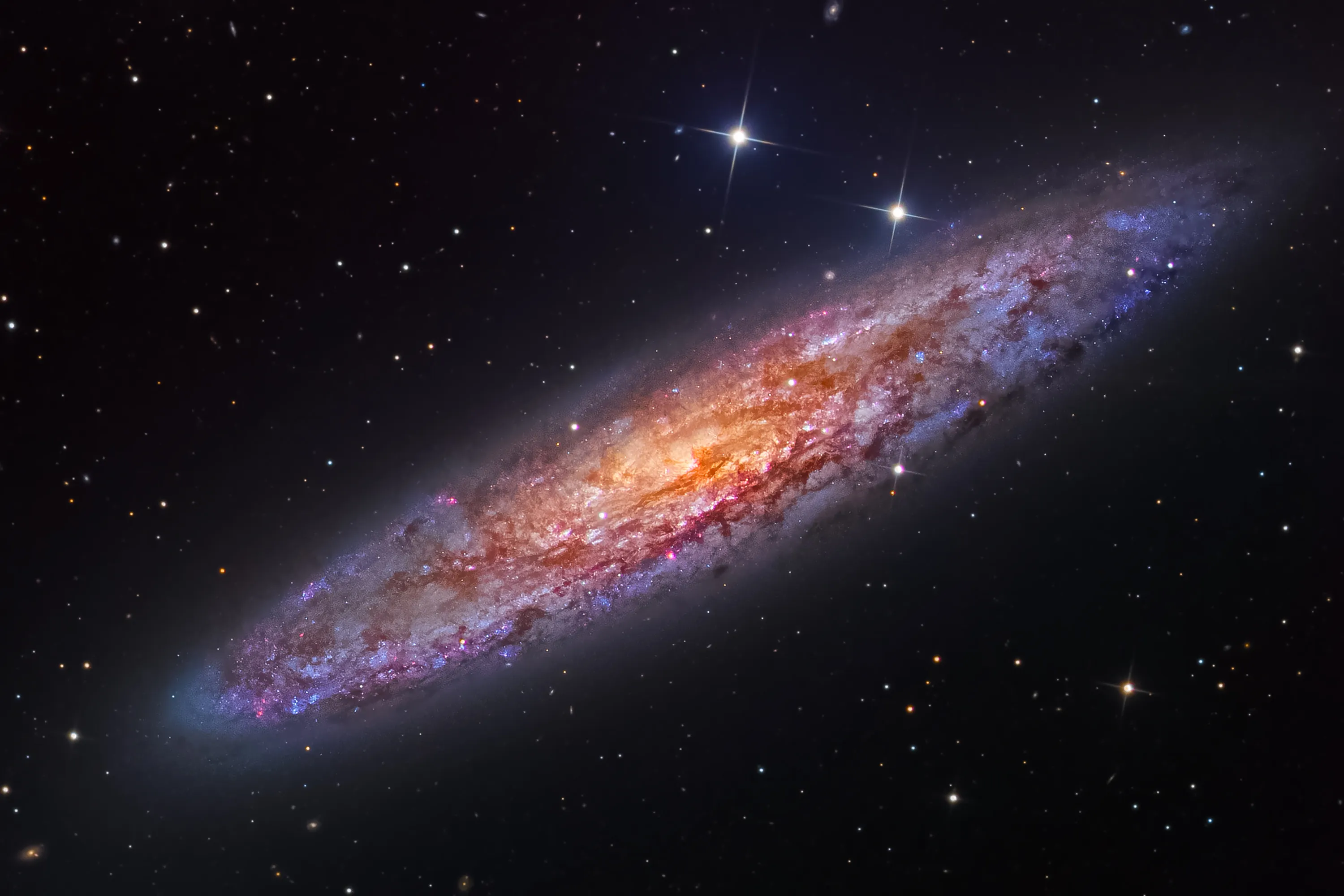 The Sculptor GalaxyBernard Miller, Martin Pugh (USA). This is an image of NGC 253, also known as the Sculptor Galaxy. It is a spiral galaxy about 11 million light years away in the constellation Sculptor. It is a starburst galaxy, which means it undergoes periods of intense star formation and is the largest galaxy in a group of galaxies called the Sculptor Group. (Photo by Bernard Miller and Martin Pugh/National Maritime Museum)