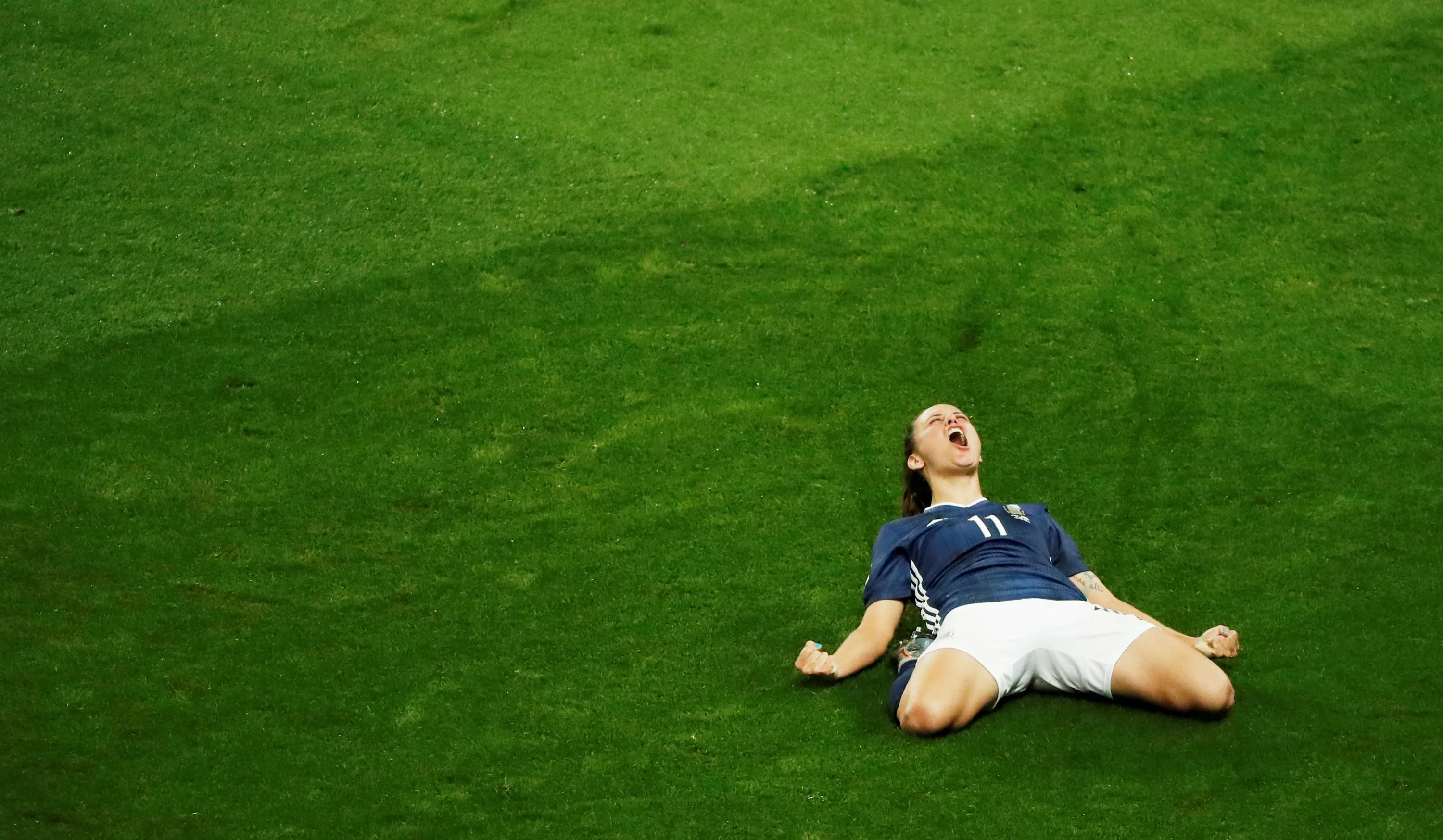 Argentina's forward Florencia Bonsegundo celebrates after scoring a goal during the France 2019 Women's World Cup Group D football match between Scotland and Argentina, on June 19, 2019, at the Parc des Princes stadium in Paris. (Photo by Gonzalo Fuentes/Reuters)