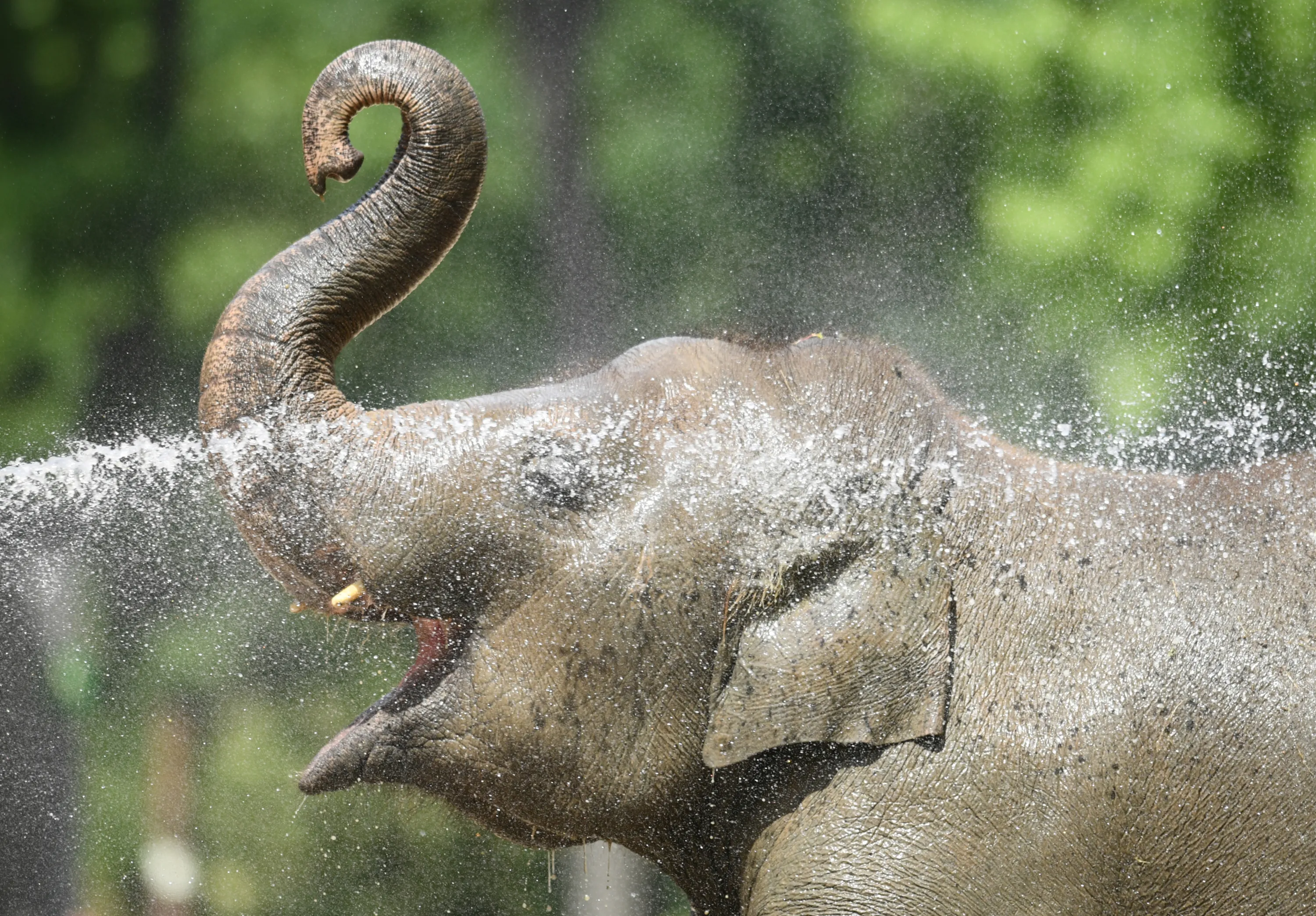 A zookeeper uses water to cool off elephants, as a heatwave is expected to reach the city, at the Berlin Zoo, Germany on June 25, 2019. (Photo by Annegret Hilse/Reuters)