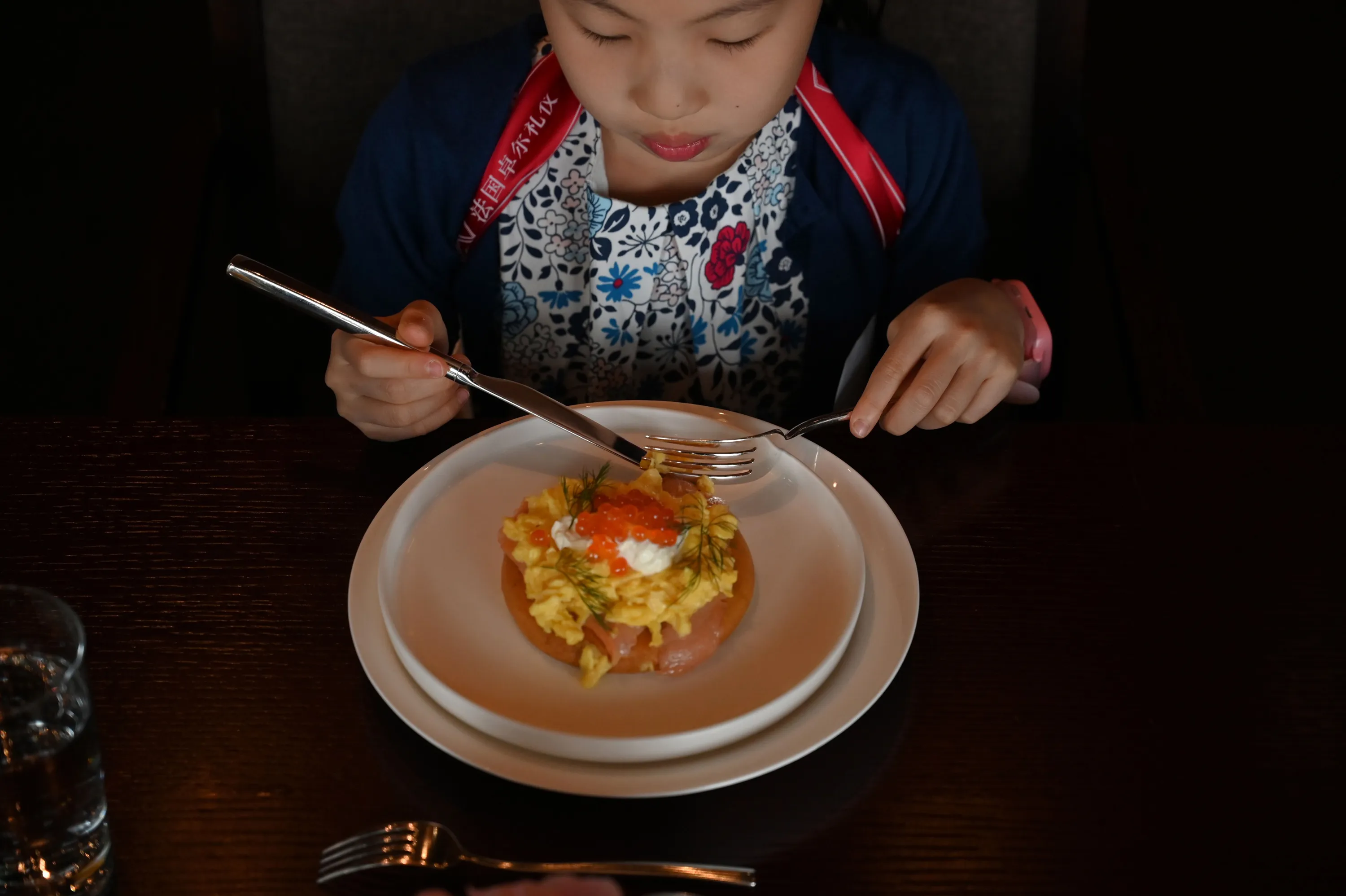 This picture taken on June 1, 2019 shows Danielle Liu eating during an etiquette and manners class in central Shanghai. (Photo by /Reuters)