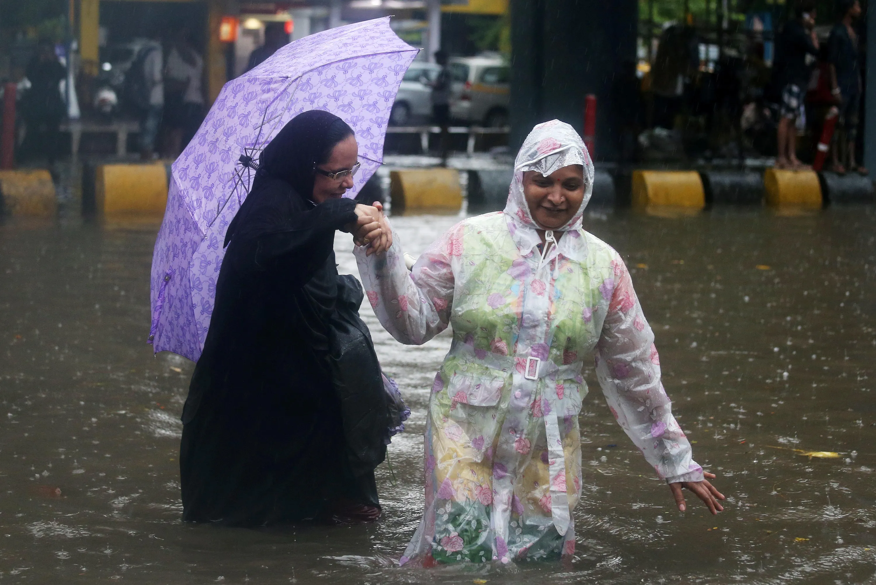 Women wade through a waterlogged street during heavy rains in Mumbai, June 28, 2019. (Photo by Francis Mascarenhas/Reuters)