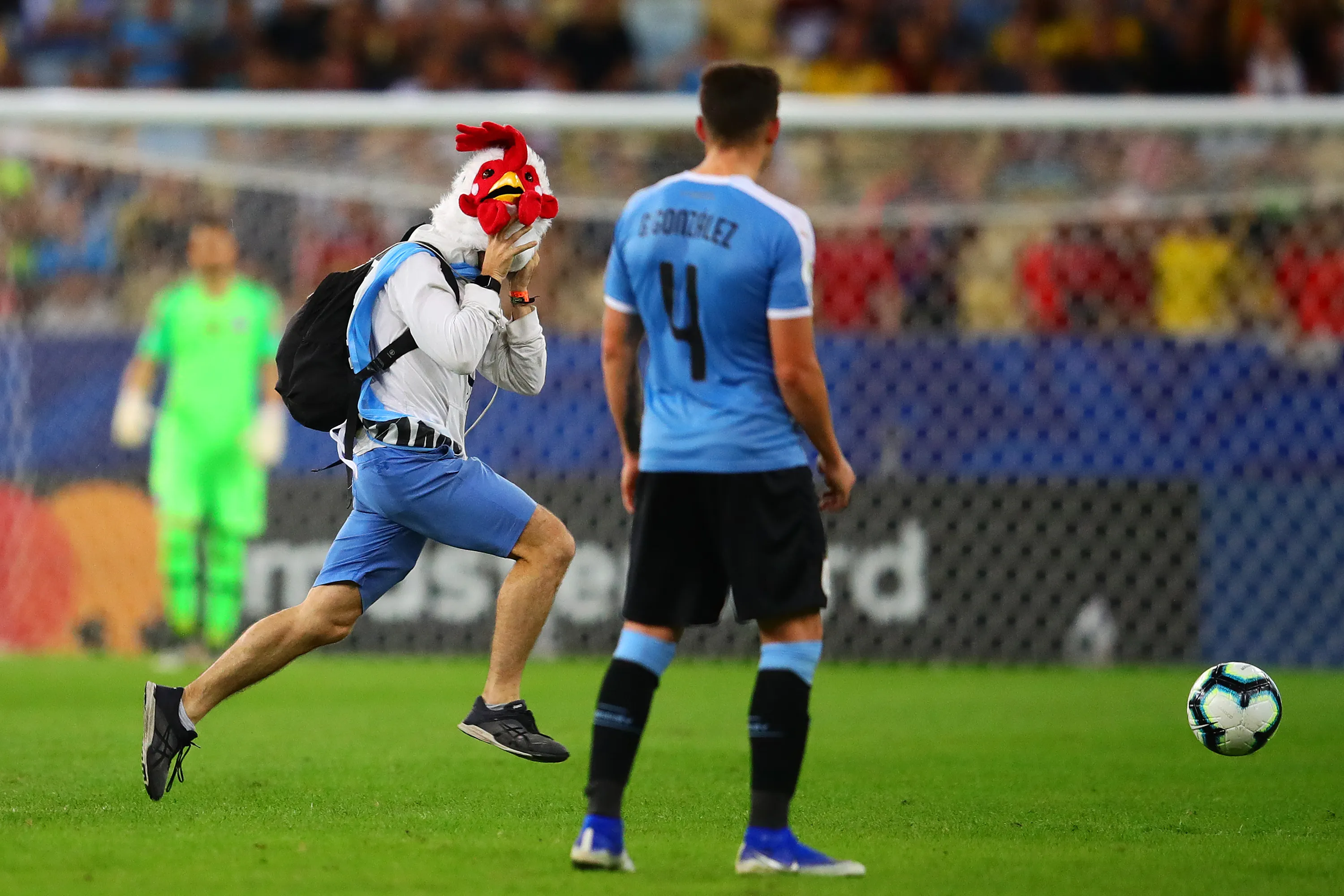 A pitch invader enters the field during the Copa America Brazil 2019 group C match between Chile and Uruguay at Maracana Stadium on June 24, 2019 in Rio de Janeiro, Brazil. (Photo by Chris Brunskill/Fantasista/Getty Images)
